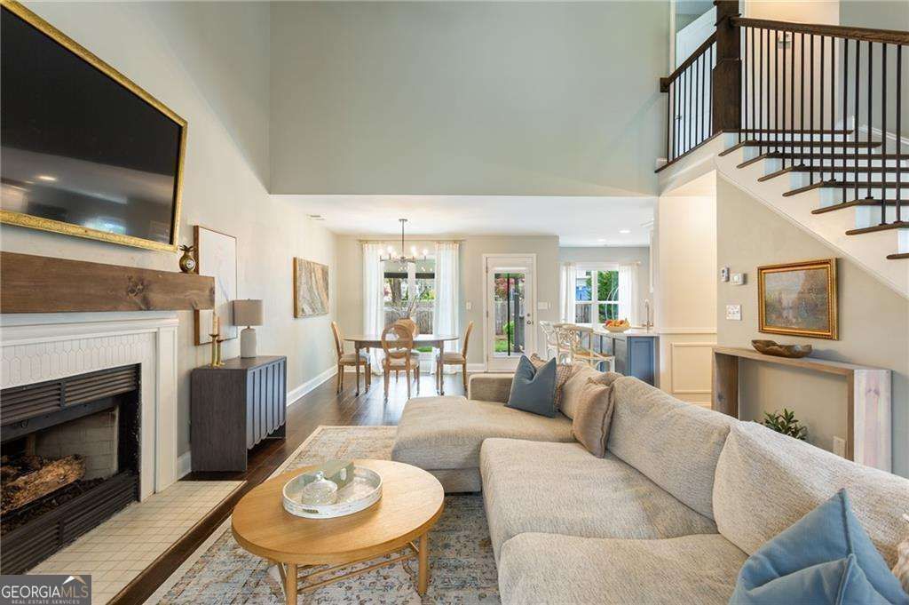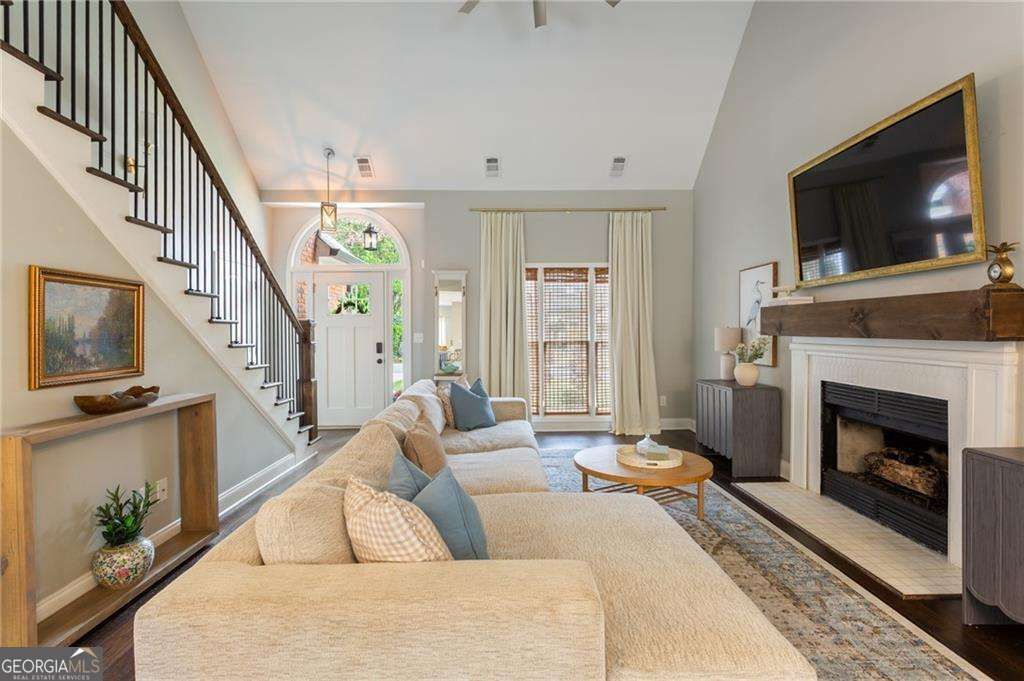 Tucked along a quiet street, this four bedroom, two and a half bath home offers a clean, updated feel with a layout that makes everyday living easy. A classic brick front and two-car garage set the tone, while the inviting entry leads into a bright, open main level with soaring ceilings and a fireplace that anchors the living space. The kitchen has been renovated with white cabinetry, quartz countertops, stainless steel appliances, and a center island with seating. It connects seamlessly to the dining area overlooking the backyard, creating a natural flow for daily routines and gatherings. The main level includes a spacious primary suite with a renovated bath featuring a double vanity and glass-enclosed shower. Secondary bedrooms are well-sized with access to an updated hall bath. Out back, the yard offers room to enjoy with a fully fenced level lawn and a covered patio space with close proximity to the community pool. Conveniently located near the heart of Smyrna, this home offers easy access to many of the area's most popular spots. Enjoy close proximity to Smyrna Market Village, known for its local dining, shops, and community events, as well as StillFire Brewing, a recently opened destination featuring a large taproom, rooftop SkyDeck, and outdoor gathering spaces .With parks, trails, and everyday conveniences just minutes away, the location offers a balance of neighborhood comfort and access to Smyrna's growing list of amenities.