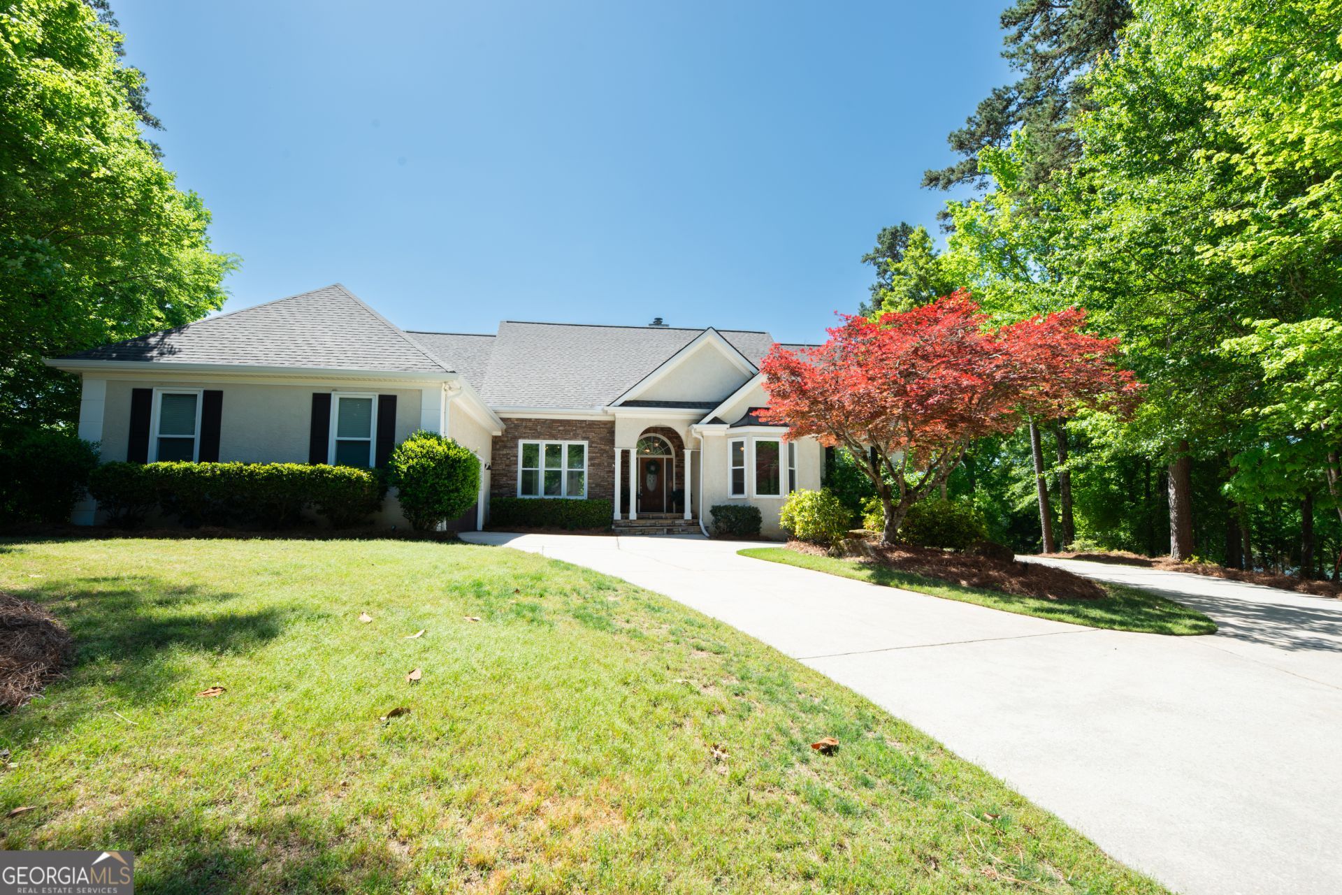 A truly rare opportunity on Lake McIntosh-offering direct, unobstructed lake access & some of the most expansive panoramic views in all of Peachtree City. Unlike many lakefront properties, this home features true, direct access to the water w/ no golf course in between, creating an authentic waterfront experience. From your own backyard, you can launch a kayak, canoe, paddle boat, or fishing boat with a trolling motor and enjoy the peaceful beauty of this electric-only lake. Perfectly positioned at the end of a peninsula on a generously sized lot, this home captures breathtaking 180-degree views of the lake-a remarkable vantage point that offers water views from nearly every angle. The setting provides a rare sense of privacy, space, and immersion in nature. As you enter the home, the thoughtful layout begins to unfold. The formal dining room is located just to the left of the entrance and flows seamlessly into the main living area. While slightly set back, it still captures beautiful views of the lake, creating an elegant space for hosting with a scenic backdrop. Just beyond, the great room is perfectly positioned to take full advantage of the waterfront setting. With soaring ceilings, a fireplace, and built-in shelves, this expansive yet inviting space is filled with natural light and framed by a wall of windows that showcase the lake. From here, step out onto the spacious rear deck, where indoor and outdoor living blend effortlessly and the views become even more breathtaking. Hardwood floors run throughout the main living areas, enhancing the warmth and continuity of the home. The kitchen, located just off the living room, has been beautifully updated and serves as the heart of the home. It features quartz countertops, updated cabinetry, a designer backsplash, and a large center island ideal for both cooking and gathering. A generously sized pantry & a light-filled eat-in area-surrounded by windows-offer additional flexibility for casual dining or a cozy sitting space, all with stunning lake views. A hallway behind the kitchen leads to the laundry room & additional storage, thoughtfully tucked away for convenience. On the opposite side of this sprawling ranch, the owner's suite offers a peaceful retreat with a sitting area, tray ceilings, hardwood floors, and serene lake views. The recently renovated primary bathroom is a true showpiece, thoughtfully designed with both style and function in mind. It features a freestanding soaking tub beneath a sunlit window, a spacious glass-enclosed shower, dual vanities, & separate his-and-her closets, along with a private water closet for added comfort & privacy. Also on on the main floor 2 additional bedrooms share a Jack-and-Jill bathroom. A conveniently located half bath completes the main level. One of the most special features of this home is that nearly every room captures a view of the lake, creating a constant connection to the outdoors throughout the home. An open staircase, centrally located between the living room and kitchen, leads to the finished terrace level. This level offers incredible versatility with a spacious family room, fireplace, kitchenette, & dining area-perfect for entertaining or extended living. A second wall of windows continues to highlight the lake views, making the terrace level just as inviting as the main floor. Two additional bedrooms with full bathrooms provide comfortable accommodations, while a flexible bonus space is ideal for a home gym, office
