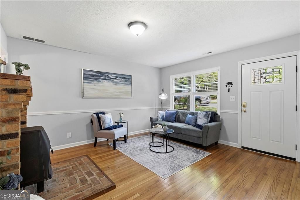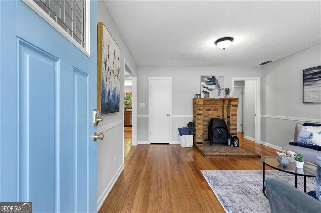 Refreshed and ready for its next chapter, 1245 Woodland Ave blends charm, function, and a backyard escape that's hard to find in the city. The curb appeal sets the tone with a long driveway offering plenty of off-street parking and a welcoming front patio made for slow mornings or neighborhood people-watching. Inside, oak hardwoods run throughout the main level, anchored by a cozy wood-burning stove with a classic brick hearth. The living space flows seamlessly into a spacious dining area and an airy kitchen with vaulted ceilings and a skylight that fills the space with natural light. The kitchen is equipped with all new stainless steel appliances and opens into a flexible eat-in, den, or sunroom space. From there, step through the brand new sliding glass door onto the showstopping 255 square foot deck overlooking a private, wooded backdrop. It is the kind of setting that makes you exhale. The main level also features two bedrooms with custom barn door closets and a classic bathroom with new vanity, lighting, plumbing, and added linen storage. Downstairs, the oversized third bedroom offers flexibility for guests or a private retreat, along with a mudroom, laundry room, and a second updated bathroom with new fixtures and finishes. There is also a generous storage area that can remain just that or be transformed into an art studio, creative workspace, or whatever your lifestyle calls for. But the real magic is outside. The 275-foot-deep lot gently slopes into a tree-lined escape complete with two fire pit areas, a refurbished and sealed original 1950s brick paver patio, and an updated shed with new roof and carpentry. A custom 4-foot stone retaining wall adds both structure and style, while a creek at the back of the property and protected green space beyond ensure lasting privacy with no future development behind you. The heavy lifting has been done. This vibey brick bungalow is move-in ready and dialed in for someone who wants character without the projects. All of this less than one mile from the Atlanta BeltLine and just minutes to East Atlanta, Grant Park, and I-20. Will it be you?