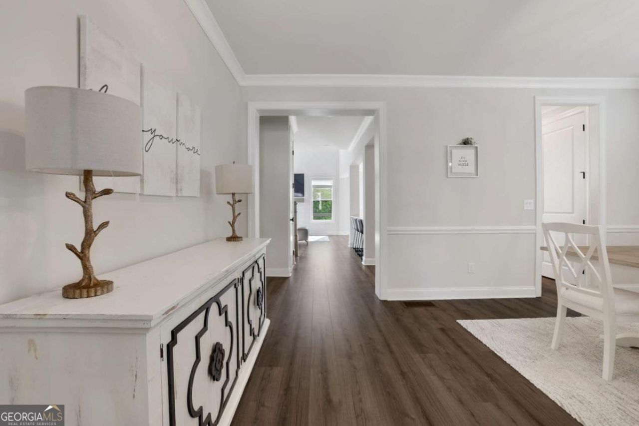 Located in the gated Bellmoore community of Johns Creek, this beautifully upgraded home offers a rare combination of modern design, natural light, and private wooded views. The main level is anchored by a stunning, oversized quartz island kitchen featuring double ovens, gas cooktop, stainless steel vent hood, and tall cabinetry, opening seamlessly to a spacious dining area and a dramatic two-story living room filled with natural light. No carpet throughout the home; all hardwood flooring throughout the entire home level adds warmth and continuity, creating an ideal setting for both everyday living and entertaining. A main-level guest bedroom and full bath provide flexibility for visitors, a home office, or multi-generational living. Upstairs, the oversized primary suite offers a peaceful retreat with a spa-inspired bath, dual vanities, and a generous walk-in closet. Secondary bedrooms are well-proportioned with access to full baths and a functional layout designed for comfort and privacy. Step outside to enjoy one of the home's most valuable features; the private, wooded backyard, offering a rare sense of seclusion within the community. Whether relaxing on the deck or entertaining guests, this setting elevates everyday living. The unfinished basement presents a blank canvas with endless potential-ready to be transformed into additional living space, a media room, gym, or guest suite tailored to your needs. Residents enjoy resort-style amenities including a clubhouse, pool, tennis courts, and maintained green spaces-all just minutes from top-rated schools, shopping, dining, and major highways. HOA-maintained landscaping included in your HOA costs!