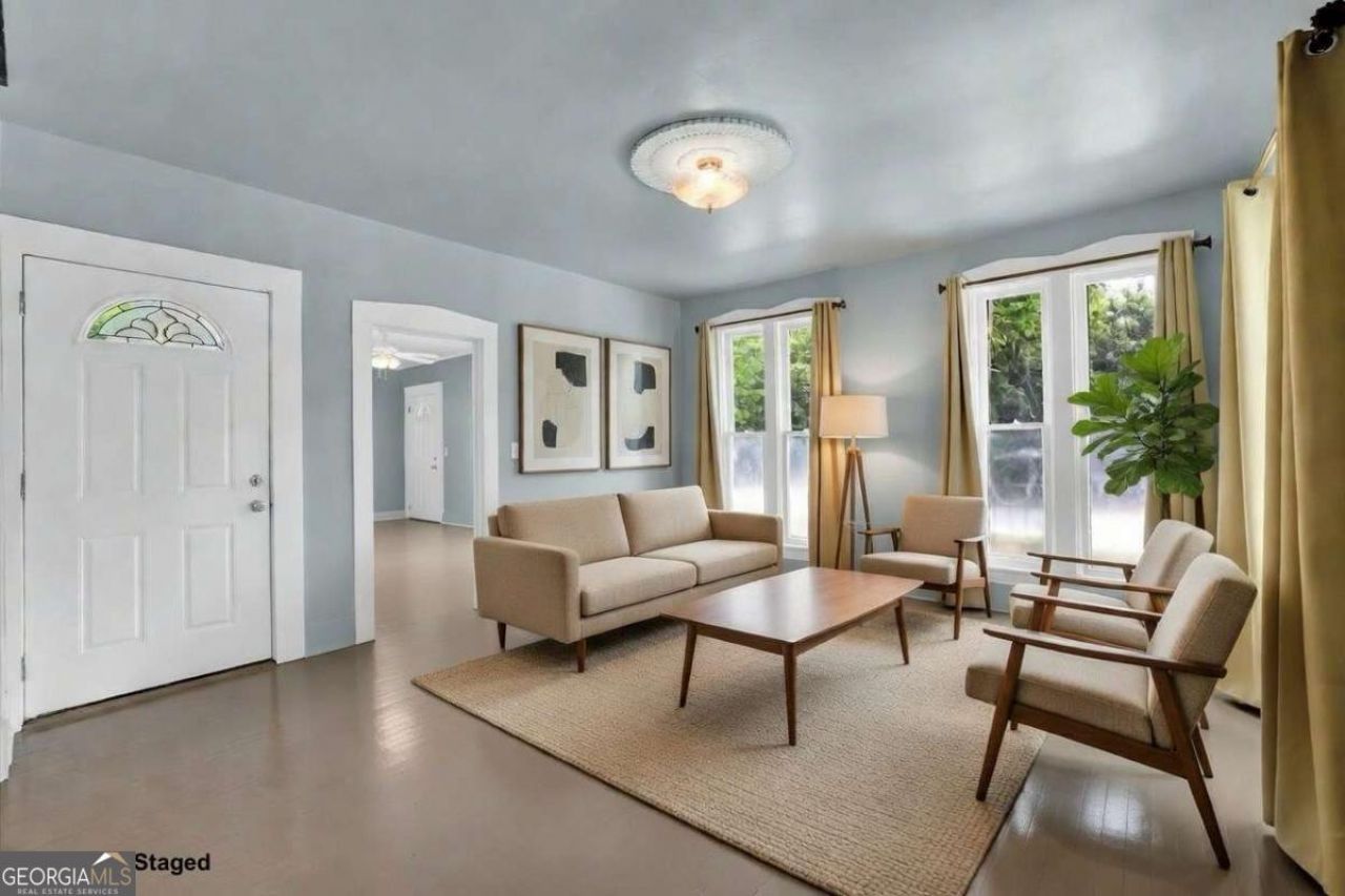Own a piece of Georgia history-where 1895 marble, timeless architecture, and modern opportunity meet at The Swan House in Marietta's Marble Mill Arts District. A grand arrival begins with elegant white and gray marble steps leading into the home, complemented by a striking pink marble wall originally mined in Tate, Georgia and transported by railroad and horse-drawn carriage-an architectural feature that makes an unforgettable first impression. Inside, the home showcases true craftsmanship with original wood floors, preserved custom millwork, and a grand staircase with turned spindles, classic banister, and prominent newel post. The main-level primary suite offers warmth and charm with its original fireplace and updated bath, while upstairs includes two additional bedrooms, one full bath, and a cozy dormer reading nook filled with natural light. Thoughtful 2024 updates provide modern comfort and peace of mind, including new HVAC systems, new roof, updated sewer lines, fresh interior and exterior paint, and a newly installed concrete driveway. Outdoor living is equally inviting with a wrap-around covered portico, open veranda, and oversized entertaining deck, all set on a gently usable 0.44-acre lot surrounded by mature hardwoods and traditional garden landscaping. Zoned CRC commercial, The Swan House offers exceptional versatility-ideal for a boutique office, creative workspace, live/work concept, or unique investment opportunity. A truly one-of-a-kind property where historic beauty meets modern potential.