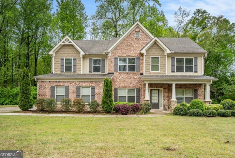 Beautifully crafted 5BR/3BA home with classic charm and modern updates. Features include a formal dining room with tray ceiling, crown molding, and chandelier, plus an inviting formal living room. The open family room with coffered ceiling and fireplace flows into the breakfast area and gourmet island kitchen with premium appliances. A guest suite with full bath is on the main level. Upstairs offers a versatile flex space, sunlit primary suite with spa-style bath, secondary bedrooms, full bath, and laundry. Enjoy outdoor living on the covered back patio and welcoming front porch.