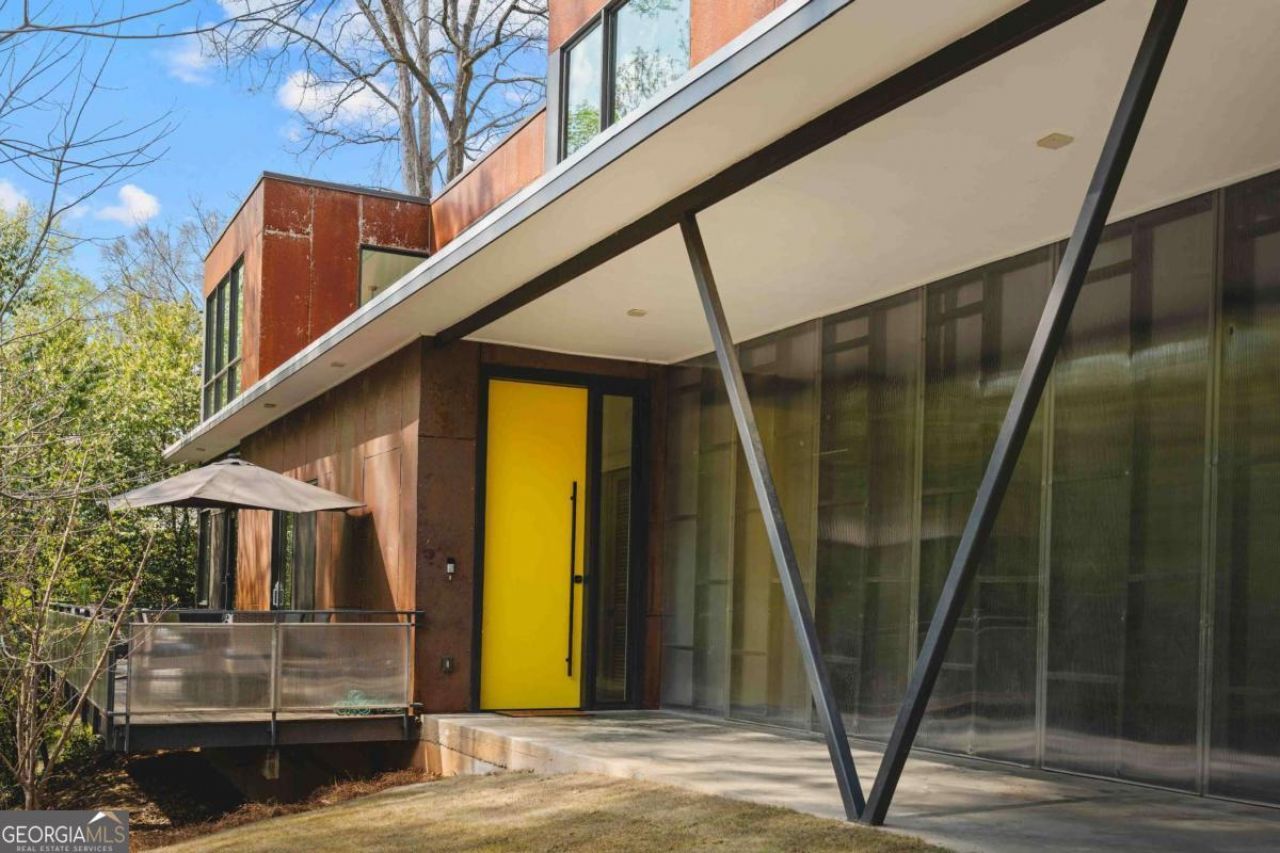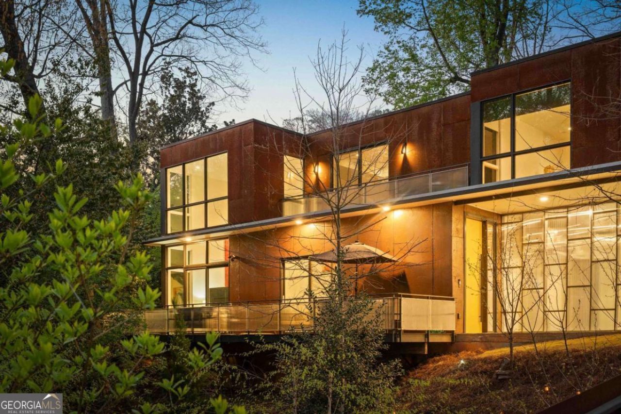 Introducing Lake Claire Bridgehaus, an ultramodern, award winning residence by architect Robert M. Cain, featuring 3 bedrooms, 3.5 baths, and exceptional sustainable design. Honored with the American Institute of Architects' April 2024 Award of Architectural Distinction and featured in both the MA! Architecture Tour of 2023 and the Lake Claire Tour of Homes, this residence has been admired by hundreds for its innovation, artistry, and unmistakable presence. A striking 10 foot contemporary front door creates a bold architectural statement and sets the tone for the experience that follows. Inside, the living space opens directly onto a welcoming Brazilian hardwood porch, creating a seamless indoor outdoor connection that invites the surrounding landscape into daily life. The main living area showcases 20 ft ceilings, expansive south facing windows, and abundant natural light, giving the home a warm, uplifting energy throughout the day. The chef's kitchen features a huge waterfall style quartz island, offering both a dramatic focal point and an inviting space for cooking, dining, and entertaining. With 11 ft ceilings across the rest of the main level, hardwood floors throughout, and sculptural floating stairs, the home's modern aesthetic is balanced by a sense of calm and comfort. Designed for connection, the open layout naturally becomes a gathering place - a home where people feel instantly at ease. At the heart of the property lies The Bridge, a defining architectural moment that spans a gentle, babbling stream. Crossing it is more than a transition - it's an experience that grounds you in the land. The sound of moving water, the filtered light through native foliage, and the subtle shift in temperature create a sensory pause that reconnects you to nature before you even reach the front door. Upstairs, the spectacular primary suite serves as a restorative retreat. Floor to ceiling windows on two walls frame treetop views and bring in soft morning light, with remote control blinds for effortless privacy. The spa inspired primary bathroom features an impressive shower room, designer lighting, and a dual vanity, creating a luxurious environment that elevates daily routines. The upper hallway is lined with rear facing floor-to-ceiling windows and a sliding glass door that opens to an additional outdoor space; an intimate perch ideal for enjoying nature with a morning coffee or unwinding with a glass of wine as the day winds down. Sustainability is woven into the home's very structure. Photovoltaic solar panels paired with Tesla battery storage reduce environmental impact while providing resilient, clean energy. Corten steel siding offers enduring, low maintenance beauty that naturally patinas with time, echoing the colors of the surrounding landscape. Rainwater cisterns harvest roof runoff for irrigation, supporting the property's ecological restoration. Invasive species were removed and replaced with a lush array of thriving native plants, creating a living landscape that supports pollinators, enhances biodiversity, and strengthens the home's connection to the land. Lake Claire Bridgehaus is more than an architectural achievement - it is a home shaped by nature and in harmony with it. Light, water, native plantings, and thoughtful design come together to create a space that feels energizing, peaceful, and deeply rooted in its surroundings. A rare opportunity to own a high performance, architect designed residence that blends modern
