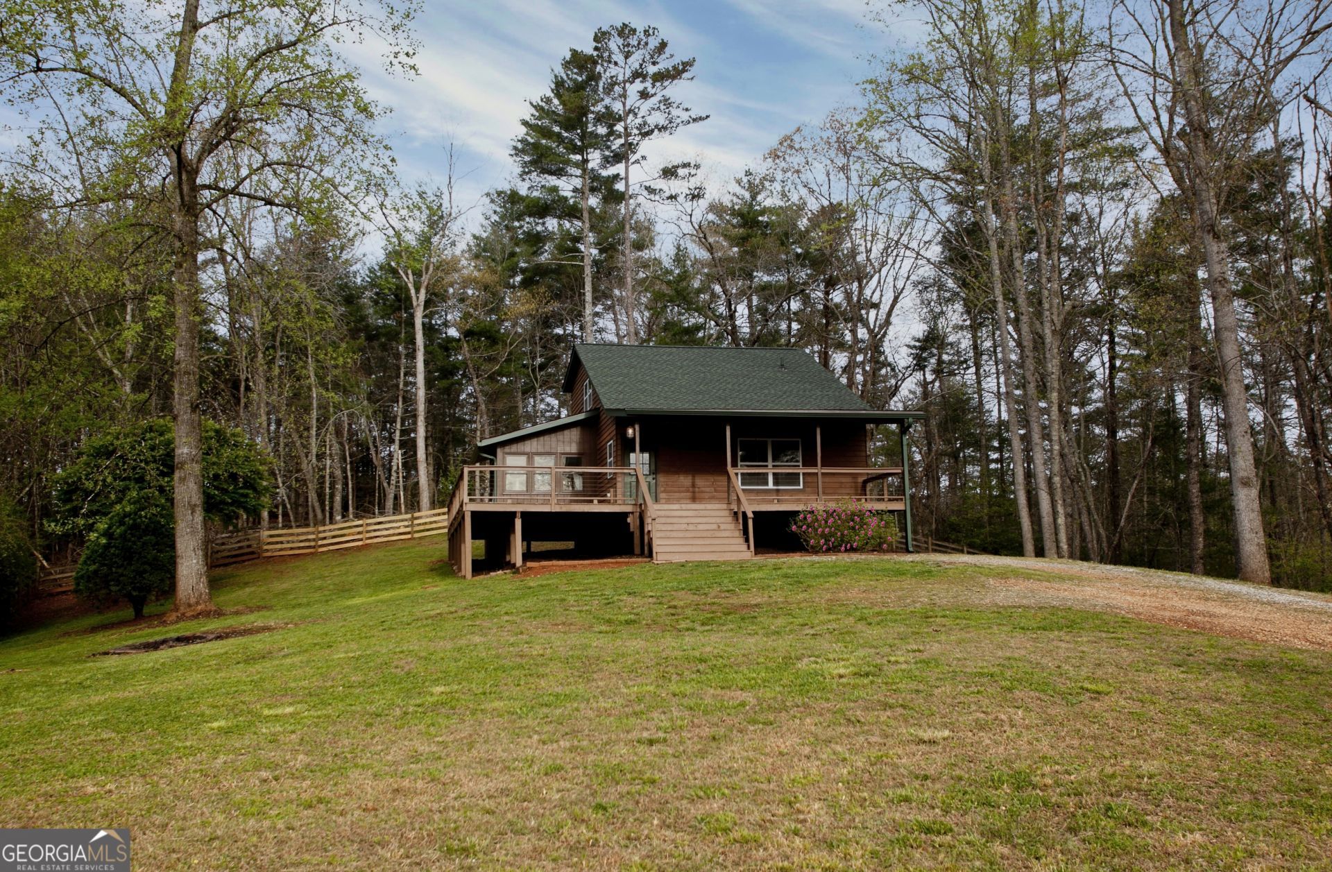 Unwind in elevated mountain living-your private, no-HOA retreat with sweeping Blue Ridge views in the heart of North GA wine country. This fully renovated 2BR/2BA modern loft-style cabin offers refined design and effortless comfort, ideal as a luxury getaway, full-time residence, or income-producing investment. Thoughtfully curated interiors feature open-concept living, rich bamboo floors, fresh 2026 paint, a designer kitchen with granite + stainless, and spa-inspired baths with marble-look tile, walk-in shower, and sleek matte black finishes. Recent upgrades include roof (2024), newer windows, well, siding, serviced HVAC and septic. Expansive wraparound porch, fenced grounds with a solar-powered gated entry, dedicated storage outbuilding, pond access, and gently rolling, usable land suited for gardening or small-scale hobby farming complete this rare offering-minutes to wineries and premier venues.