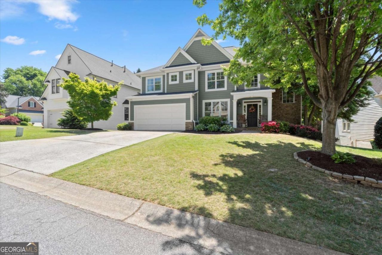 Beautiful 5-bedroom, 4-bath home in a prime Smyrna location close to downtown Atlanta, the airport, interstates, shopping, dining, and more. This spacious home features hardwood floors throughout the main level and upstairs, an open floor plan, and wonderful indoor and outdoor living spaces. The main level welcomes you with a dramatic two-story foyer, formal dining room, and a bright two-story family room with fireplace and custom built-ins. The kitchen opens to the family room and features stainless steel appliances, double ovens, gas cooktop, microwave, breakfast bar, and breakfast area. A door from the family room leads to the screened porch with LVP flooring and an adjoining grilling deck. The main level also includes a bedroom and full bath, hall tree/drop zone, and a two-car garage. Upstairs offers three bedrooms and two full baths, including a spacious primary suite with sitting area and a double-sided fireplace between the bedroom and bathroom. The primary bath features double vanities, a jetted tub, separate shower, and two walk-in closets. Two secondary bedrooms share a full bath, and the laundry room is conveniently located upstairs. The finished basement provides incredible additional living space with a theater room, game room, bar, kitchenette, office, bedroom, and full bath. Enjoy patio access under the screened porch, offering a covered outdoor space that stays dry, plus a level backyard. Major updates include a new roof in 2024, new hardwood floors on both levels in 2023, new garage door in 2023, new deck in 2020, new windows on the front of home and stucco front removed and replaced in 2017. Don't miss the amenities including a swimming pool with cabana, 2 tennis courts and a playground all located within the community at 1835 Tristan Drive.