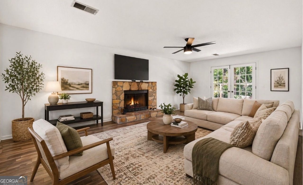This home located in a Non-HOA community of Forest River is a 3 bedroom, 2.5 bath home located a stone's throw to Georgia Gwinnett College tucked away in a quiet neighborhood and street has a fantastic, flat lot that is perfect for any stage of life. The first floor has newer LVP flooring and a spacious dining room and oversized family room with wood burning fireplace. The kitchen has all new appliances and GAS cooktop. The garage has enough room for 2 cars and extra room for storage and a workshop. Invite all your friends over for a BBQ with the large deck out back and fenced yard. There are all new windows in the home that yield efficient cooling and heating and lower the utility bills. Upstairs you will find the bedrooms are all larger than you are used to and there is an en suite primary bathroom and walk-in shower. Each bedroom can fit a King size bed...perfect for sharing or housing large furniture. The zoned schools are the top-rated Collins Hill cluster and so close to downtown Lawrenceville and all the unique and delicious restaurants there are to offer. Conveniently located right off and 85/316.