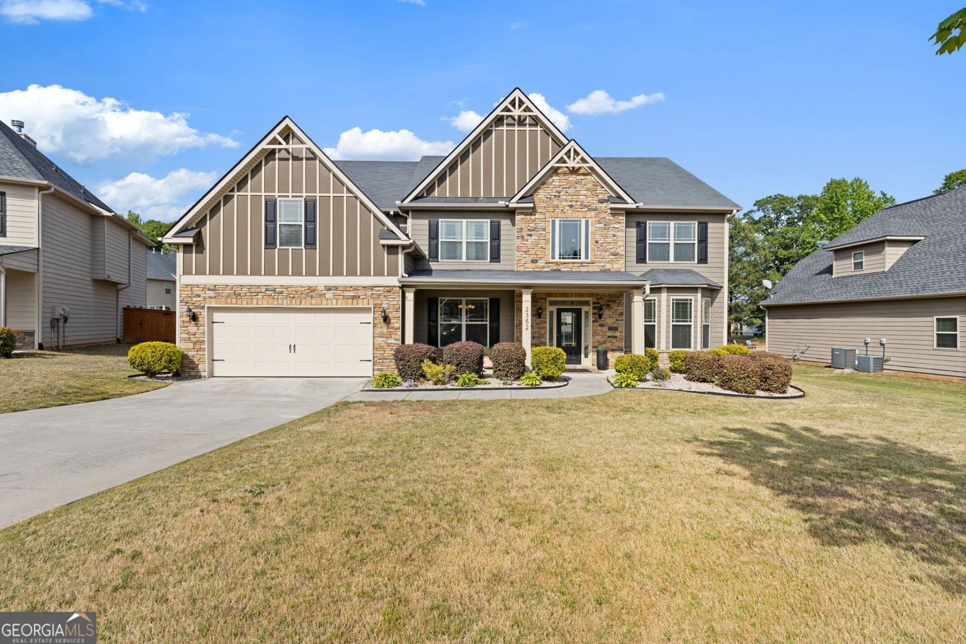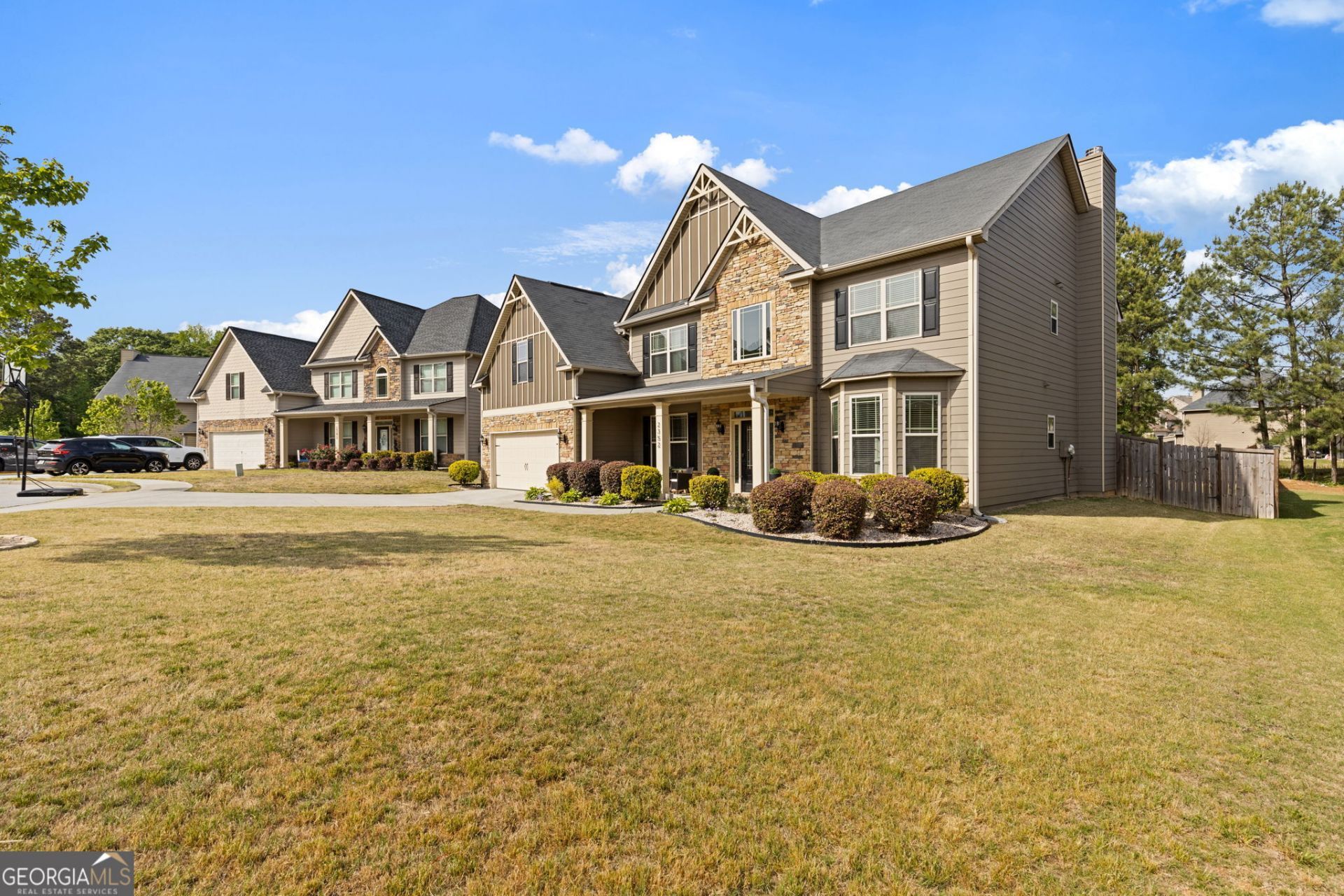 This beautifully maintained 5-bedroom, 4,000+ square foot home, built in 2015, is located in the highly sought-after Georgetown Commons community in Grayson. Step into a bright and welcoming foyer that opens to spacious living areas featuring gorgeous engineered hardwood floors throughout the main level. The main floor includes a private bedroom with a full en suite-perfect for guests or multi-generational living-along with a mudroom, oversized laundry room, and walk-in pantry. The open-concept kitchen features granite countertops, abundant cabinetry, and a seamless flow into the breakfast area and family room, making it ideal for entertaining. Upstairs, you'll find the oversized primary suite complete with a separate sitting area, spa-like bathroom, and ample closet space. Three additional generously sized bedrooms are also located on the second floor, including two connected by a Jack-and-Jill bathroom with shared shower and toilet, plus private vanities and closets for added privacy. A versatile media room or office space completes the upper level.