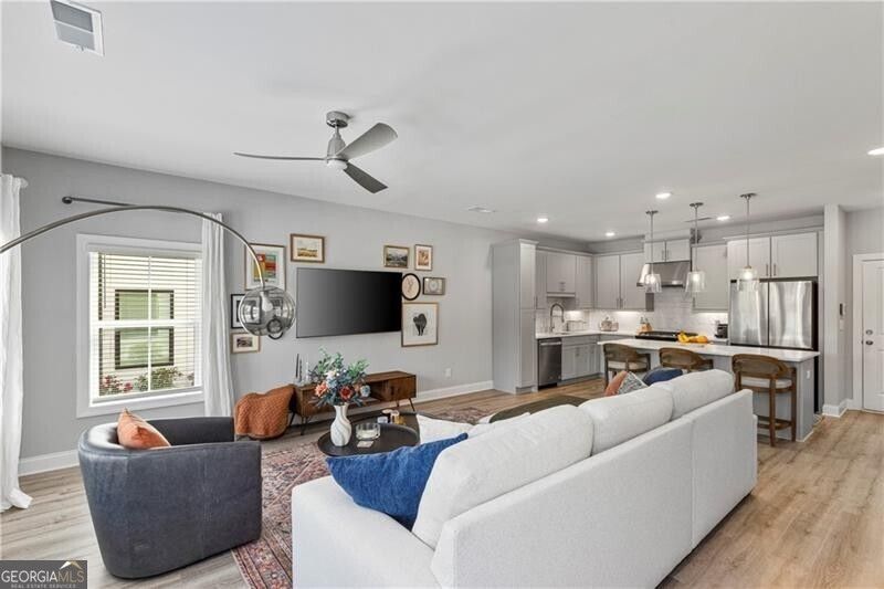 Modern, light-filled end-unit townhome near East Atlanta Village brings together clean design, natural light, and effortless city living. Tucked on a quiet street within the community, this home offers one of the best locations available, with added privacy and abundant guest parking. The open-concept floorplan is filled with natural light and thoughtfully designed for both everyday living and entertaining. The chef's kitchen is a true focal point, featuring an oversized island with ample seating, designer backsplash, custom vent hood, and high-end finishes that feel straight out of a modern design magazine. The seamless flow into the living and dining areas creates an inviting, airy space. Upstairs, the spacious primary suite offers a relaxing retreat with a large walk-in closet and well-appointed bath. The laundry is conveniently located upstairs, along with two additional bedrooms and a full bath. A neutral palette with subtle, on-trend pops of color enhances the home's modern feel. Enjoy a low-maintenance lifestyle with unbeatable proximity to East Atlanta Village, Grant Park, Zoo Atlanta, and the Grant Park Farmers Market, plus quick access to I-20, I-285, and I-75-and an easy drive to the airport for frequent travelers. This location truly makes commuting and city living effortless.
