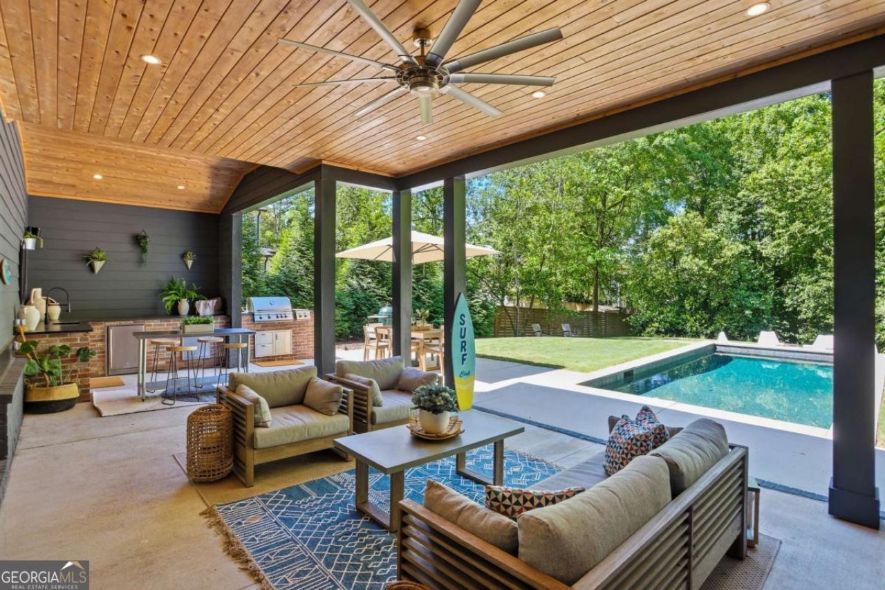 Exquisite newer construction home in the heart of Brookhaven on one of the most highly coveted streets! This beautifully crafted home with custom finishes and hardwood floors throughout is an entertainers dream while also providing the ease and comfort of everyday living. Large windows flood the entry with natural light and frame a stunning view of the home's interior. The warm, open family room offers an inviting first impression upon entry, highlighted by two oversized sliding glass doors that open seamlessly to the showstopping backyard oasis. Featuring a saltwater pool, covered patio, outdoor kitchen, green space, and complete privacy, the fully fenced backyard is a serene, resort-style escape. Inside, the gourmet kitchen features top of the line appliances, gorgeous hand-made tile backsplash from Claybrook Studio in England, an oversized quartz island, mudroom, walk-in pantry, beverage center, and a breakfast nook with customized built-in seating. The entire main floor feels so open and airy, providing clear sightlines to the grand family room and fireplace with a custom-made bench for an added focal point and extra seating. The main level also encompasses a light filled sunroom- perfect for an office, a dining room with a built in-buffet, a main floor bedroom with a full bathroom ensuite, and an under-the-stairs wine cellar. On the second level, each of the 4 bedrooms are adorned with custom window treatments and include their own custom designed ensuite bathroom, all featuring high-end marble and Delta fixtures. The oversized owner's suite provides a true escape with bright windows and a view to the stunning backyard. The owner's bath boasts soapstone atop a custom double vanity that accompanies an indulgent soaking tub, a large shower and walk-in closet with ample storage. The third level bonus room is perfect for an entertainment space, playroom, office, you name it! Equipped with its own half bath, built-in beverage center, and walk-in storage, it's the perfect flex space. This breathtaking home sits on a large, level, and beautifully landscaped lot with an irrigation system servicing the front and backyard for ease of maintenance. With an unbeatable location and just minutes from Brookhaven's best restaurants, shops, schools and highways- this home truly has it all!