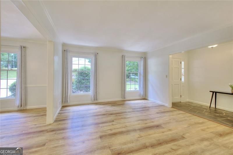 Welcome to this cozy, well-loved, split-level home in the friendly Dunwoody North Community. Tucked in a great neighborhood, this home offers a relaxed blend of comfort and style with thoughtful updates, and plenty of space for everyday living and hanging out with family and friends. Step outside to well established Zoysia lawns and colorful flower gardens and enjoy your own, fully fenced, backyard oasis. The highlight here is the 36' x 18' saltwater pool with Pebble Tec coating and adjustable lighting, waterslide hookup, brick paver decking, a large screened porch and an expansive deck with lighting, natural gas and hot/cold water connections. Inside, the heart of the home is the bright kitchen with a 5-burner gas cooktop, granite counters and a commercial-grade vent hood. The kitchen opens directly into a sunny breakfast area on one side, and a comfortable family room on the other, while a living room near the front entry provides a welcoming space for greeting guests. Additional flexible living areas include a bedroom/home office and a large pantry with custom cabinetry. Two distinct but connected family rooms offer inviting gathering spaces - one centered around a traditional wood-burning fireplace and the other highlighting a wood-burning stove and wet bar with custom cabinets. Ample storage is available throughout the home. The 2-car garage includes a workbench and two storage rooms, one of which has permanent stairs to a large attic. The basement includes multiple storage areas including a large closet with integrated shelving. The spa-like bathrooms have been fully renovated over the years (2019-2023) with features like floating bench, digital dual-head showers with touch controls (inside and out), vibe setting adjustable color lights, quiet fans, and thermostatic shower control valves for continuous comfort. Recent updates make it easy to move right in: new driveway (2025), LVP dining room flooring (2025), renovated deck (2024), hot water heater (2023), one HVAC system replaced (2021), pantry with full wall storage and partially heated tile floor (2019), double hung (fully removable) windows (2016), newly upgraded basement (new carpet 2026) with access to backyard/pool area, plus upgraded lighting and energy-efficient touches throughout. The Dunwoody North community is welcoming and full of life. Enjoy the neighborhood pool of the Dunwoody North Driving Club, which now also includes a covered baby pool, several swim/tennis teams, cantina, covered picnic spots and a grilling area. Just minutes away from the 110+ acre Brook Run Park, featuring sports fields, wooded walking trails, playground, skate park, dog parks, community garden, as well as an amphitheater for live entertainment and year-round community events. This is a truly special, one-of-a-kind home ready for your family to make it their own.