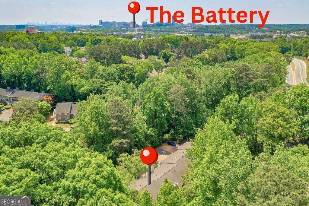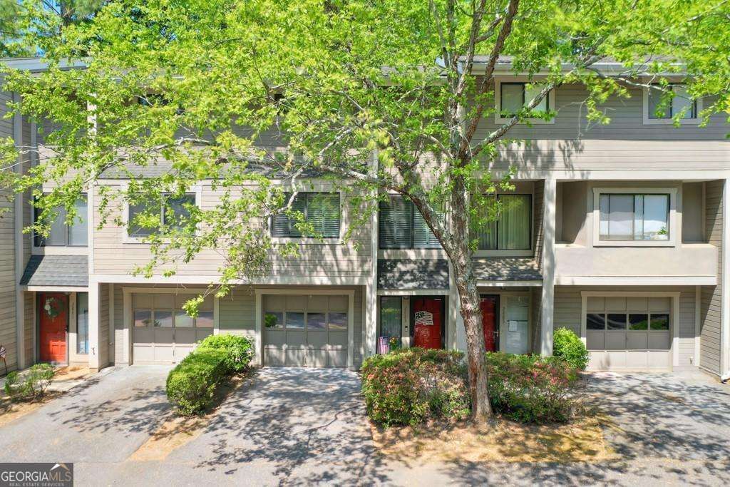 Strategically located with quick access to I-75 Express Lanes and I-285, this home makes commuting to downtown Atlanta or the airport effortless. Enjoy close proximity to Truist Park, The Battery, the Chattahoochee River trails, Marietta Square, Smyrna, Vinings, and Cumberland-placing you right in the heart of it all! Step into a welcoming foyer and ascend to the open-concept main level. The spacious living room, complete with a fireplace and cozy reading nook, overlooks a private patio with peaceful wooded views! Ideal for entertaining, the dining area flows seamlessly into the sun-filled kitchen with breakfast bar! Upstairs, the Owner's Suite features a spacious walk-in closet and a charming covered porch. A large second bedroom and full bathroom provide flexible space for guests, a roommate layout, or a private home office-designed to adapt to your needs. The attached garage is a standout feature, offering additional storage, along with ample guest parking just outside your front door. Ideally positioned within the community, this home enjoys exceptional privacy with no direct rear neighbors and the shortest, most convenient access to the pool and clubhouse amenities. The Woods community offers a truly low-maintenance lifestyle, with the Homeowners Association covering exterior maintenance and grounds maintenance, landscaping, pest control and termite treatment, as well as trash, sewer, and water services. The HVAC and ductwork was replaced 2 years ago, all new Plumbing in 2026 along with freshened paint, lighting fixtures!