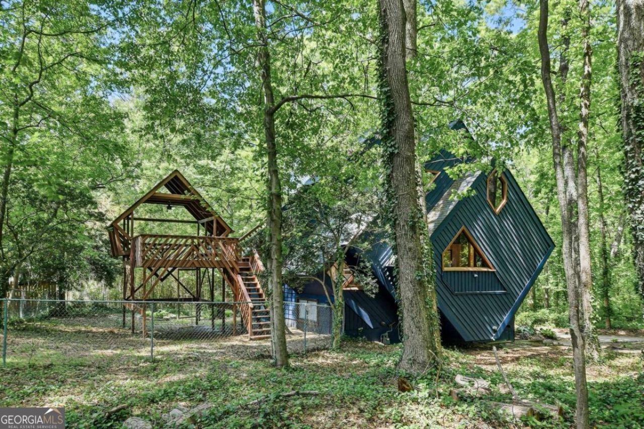 Some homes are built... and some are designed to be remembered. Welcome to a truly one-of-a-kind architectural gem in the heart of East Cobb. Designed by architect Tom Mozen, this home is a rare opportunity to own a piece of local design history. The home showcases his iconic floating staircase-an eye-catching centerpiece that defines the space and set the tone for his influence on the neighborhood's architectural style throughout the 1970s. Thoughtfully designed with both form and function in mind, the home features open, light-filled living spaces, clean lines, and a seamless flow that feels both timeless and ahead of its era. The striking staircase anchors the interior, while large windows and intentional sightlines create a sense of connection between rooms and invite natural light throughout. Thoughtfully updated and meticulously maintained, this home blends timeless style with meaningful modern upgrades. Kitchen features luxury quartz countertops, new fridge, gas cooktop and wall mounted oven/microwave. Major improvements include a brand-new roof, new water heater, recently serviced HVAC, brand new washer/dryer and an updated electrical panel-providing peace of mind for years to come. The primary suite feels like a private retreat, featuring rich Brazilian cherry hardwood flooring and a spa-inspired bath designed for relaxation. Enjoy an oversized walk-in shower complete with an integrated soaking tub, paired with sleek double floating vanities that bring a modern, designer touch. You also have a private entry onto the deck! Every detail has been curated to balance comfort, function, and refined living. Situated on a quiet cul-de-sac, the property offers privacy while still being incredibly convenient. Located directly across from Pope High School and within one of East Cobb's most sought-after school districts, this home combines architectural significance with everyday practicality. Whether you're drawn to its history, its design, or its location, this home stands apart from anything else on the market.
