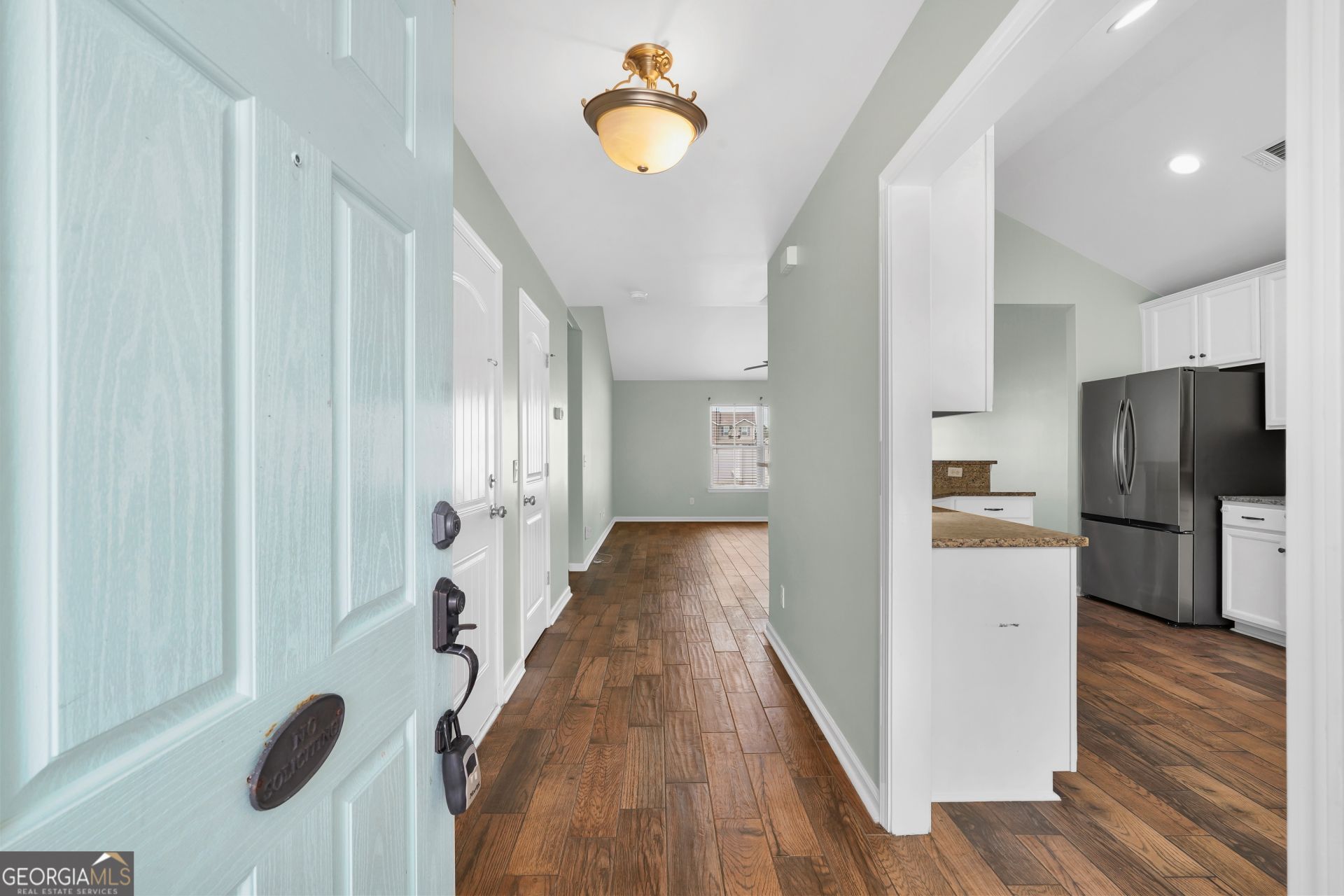Welcome home to this beautifully maintained 3-bedroom, 2-bath home in the desirable Settlers Hammock community! Built in 2015, this single-story home offers 1,560 square feet of thoughtfully designed living space with an open and functional layout. The spacious kitchen features granite countertops, stainless steel appliances, a breakfast bar, and ample cabinet space-perfect for everyday living and entertaining. The open-concept design flows seamlessly into the main living and dining areas, creating a warm and inviting atmosphere. The owner's suite offers a relaxing retreat with tray ceilings, a walk-in closet, and an en-suite bath complete with double vanities, a soaking tub, and separate shower. Additional highlights include durable flooring throughout with no carpet, providing both style and easy maintenance. Step outside to enjoy the fully fenced backyard-ideal for pets, play, or quiet evenings at home. The property also includes a 2-car garage and sits on a well-sized lot in a sidewalk-lined neighborhood with community amenities. Conveniently located near schools, shopping, dining, and just minutes from I-95 and Kings Bay Naval Base, this home offers both comfort and convenience.
