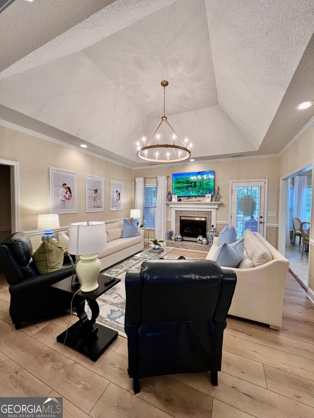 Welcome to 304 Northwood Trail in the desirable Northwood Trails subdivision! Situated on a beautifully landscaped 1+ acre lot, this well-maintained home offers a wonderful balance of privacy and convenience, with easy access to shopping, dining, and everyday essentials. Inside, you'll find a thoughtfully designed split floor plan featuring 4 bedrooms and 2.5 bathrooms, along with stylish LVP flooring throughout and updated lighting that enhances the home's modern appeal. The spacious great room includes a tray ceiling, a cozy fireplace with gas logs, and views of the backyard, creating a comfortable and inviting atmosphere. The kitchen is both spacious and updated, featuring stainless steel appliances, freshly painted cabinetry, updated hardware, and ample space for cooking and gathering. A formal dining room provides additional flexibility for entertaining or everyday use. Step outside to the large covered rear deck-perfect for relaxing or hosting-overlooking the expansive yard. The owner's suite offers a peaceful retreat with a tray ceiling, oversized walk-in closet, and a private bathroom complete with double vanities, a jetted tub, and a separate shower. Outdoors, the property is enhanced by a sprinkler system supplied by a private well, helping maintain the lush landscaping with ease. A detached outbuilding provides additional storage or workspace, and the generous lot offers plenty of room to enjoy the outdoors. This move-in-ready home combines comfort, space, and convenience in a welcoming setting. Schedule your private showing today. Agent-owned property.