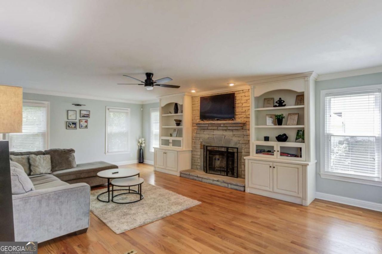 Welcome to this well maintained 4BDRM, 3.5BATH home with no HOA, offering both comfort and incredible flexibility! This home is perfect for homeowners or investors alike. Ideally located in the North Hall High school district and just one mile from Lake Lanier Olympic Park. Step inside to a bright and inviting main level featuring a separate dining room and a spacious living room complete with built-in shelving, a beautiful stone fireplace, and wood flooring throughout the main living areas. The kitchen is designed for both function and style, offering a breakfast bar, stained cabinetry, stone countertops, stainless steel appliances, and a pantry. Upstairs, the oversized primary suite showcases a coffered ceiling and abundant natural light. The en-suite bath includes a garden tub, separate shower, dual vanities, and a walk-in closet. Additional bedrooms are generously sized, and the conveniently located upstairs laundry room adds to everyday ease. The finished basement expands your living space with a secondary kitchen, full bath, and another stone fireplace and offering endless possibilities for multi-generational living, rental income, or entertaining. Outdoor living features a covered and screened-in deck, a lower-level permeable paved patio, and a built-in fire pit area perfect for relaxing or hosting guests. The backyard offers an enclosed space with a chain-link fence for added functionality. As an added bonus, select furnishings will convey with the home if the buyer wishes to keep, offering a turnkey opportunity for buyers.