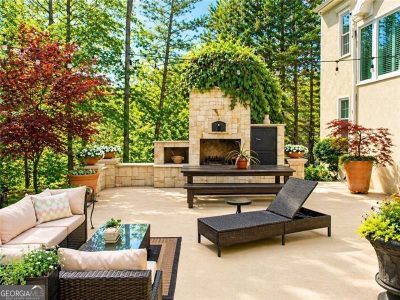European elegance meets exceptional indoor-outdoor living on a private .96-acre lot in Berkeley Lake-featuring a stunning 900 sq ft patio with a custom chimney fireplace, built-in smoker, and pizza oven. This home welcomes you and guests into a grand foyer with solid oak hardwoods and exquisite trim that leads to two spacious gathering rooms-one featuring a striking floor-to-ceiling white stacked-stone fireplace. Designed for entertaining, the chef's kitchen offers abundant cabinetry, generous workspace, a walk-in pantry, and flows seamlessly into the Morning Room and bright Keeping Room with fireplace, built-ins, and a wall of windows. Upstairs, a loft provides flexible living space. The primary suite is a true retreat with a vaulted tray ceiling, fireplace, built-ins, and NEW carpet, plus a private sitting room ideal for an office. The updated spa-like bath features NEW porcelain flooring, a deep soaking tub, tiled shower, and a custom closet with a hidden infrared sauna. Three additional bedrooms include one ensuite and a Jack-and-Jill layout. The terrace level is largely finished with a full bath and flexible space-ideal for an artist's studio, guest suite, or potential 5th bedroom. Additional unfinished space offers excellent storage or workshop potential. Outdoor living is exceptional, featuring an expansive 900 sf patio with a custom chimney fireplace, built-in smoker, and pizza oven-perfect for year-round entertaining. Plenty of room to add a pool. Located near Peachtree Corners, Duluth, and Norcross in the highly sought-after City of Berkeley Lake, with convenient access to I-285, premier shopping, dining, parks, top rated schools including Wesleyan. Seasonal outdoor concerts, private 70 acres of green space with trails, and optional membership to join the gated amenities of 88-acre Berkeley Lake for boating, fishing, beach, Picnic tables, volleyball, 2 pavilions, a darling chapel, and year-round community events. Not to be missed - 4th of July events on the water! Berkeley Lake is considered one of the most desirable hidden gems in Georgia-offering a rare blend of privacy, community, and lifestyle that is difficult to find elsewhere.