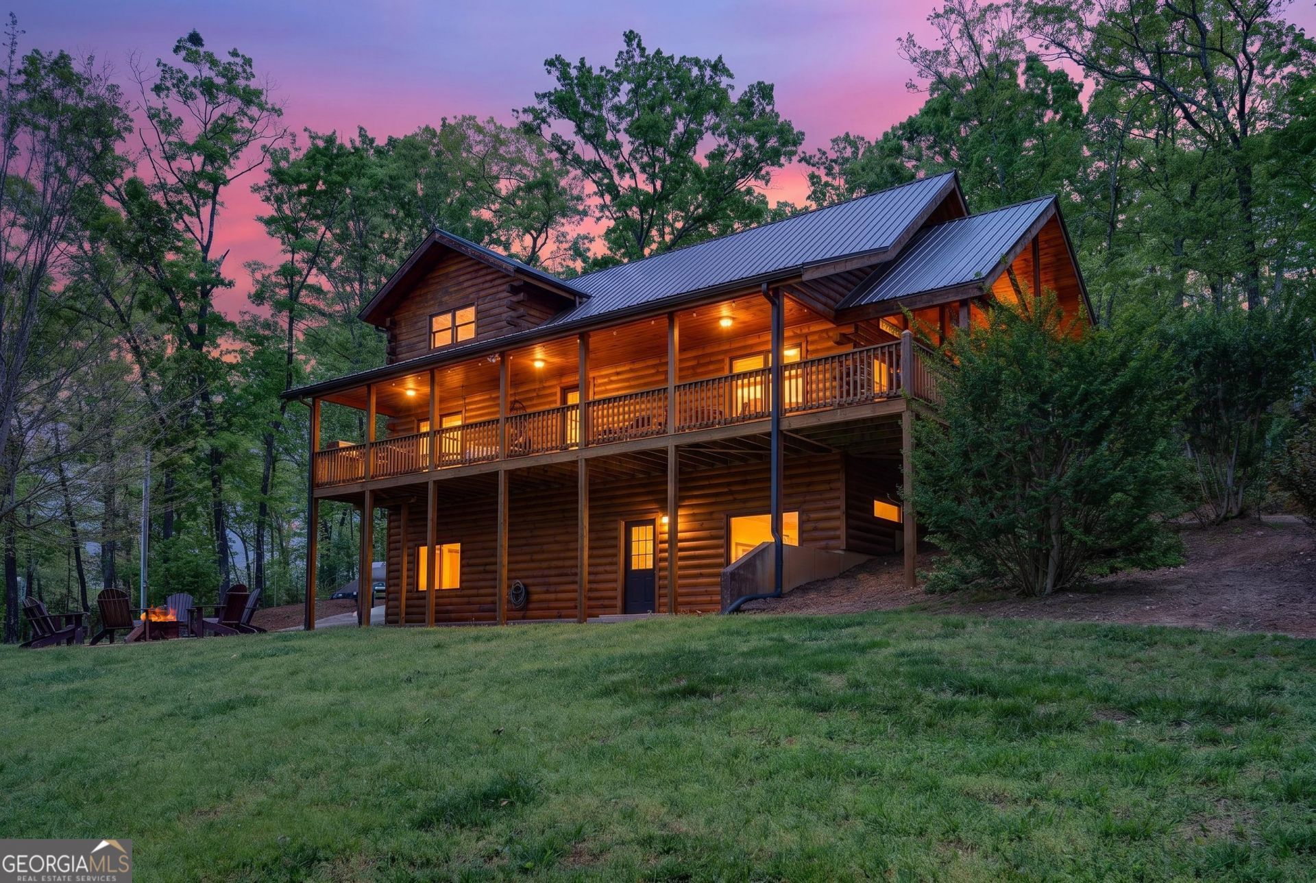 Beautiful furnished cabin with seasonal mountain views just minutes to Blue Ridge. This open concept cabin has volume ceilings, exquisite wood detail, large windows for ample natural light and extensive wrap around porches. The cabin is perfect for primary, 2nd home or short term rental. The main level offers 2 bedrooms, bathroom, laundry and large great room which includes dining area, inviting living room and spacious kitchen. The kitchen has custom cabinets with glass inlays/ plate holders, niches, stone sink and other detail. Stone counters and stainless steel appliances complete your spacious kitchen. The upper level has a loft area and the primary bedroom suite. The primary bedroom is spacious and offers abundant closet space. The en-suite bathroom includes shower and jetted tub. The lower walk out level features a large game room with over $7000 in arcade games. On this level you will find a 3rd bedroom and full bath with additional private exterior entrance and multiple closets for storage. The property has a private setting, gentle slope, circular driveway, fire pit area, hot tub and a beautiful setting! Fully furnished turn key short term rental. Minutes to grocery stores, dining, wineries and all our area offers! Easy drive to this property - Come see this cabin and make it yours!
