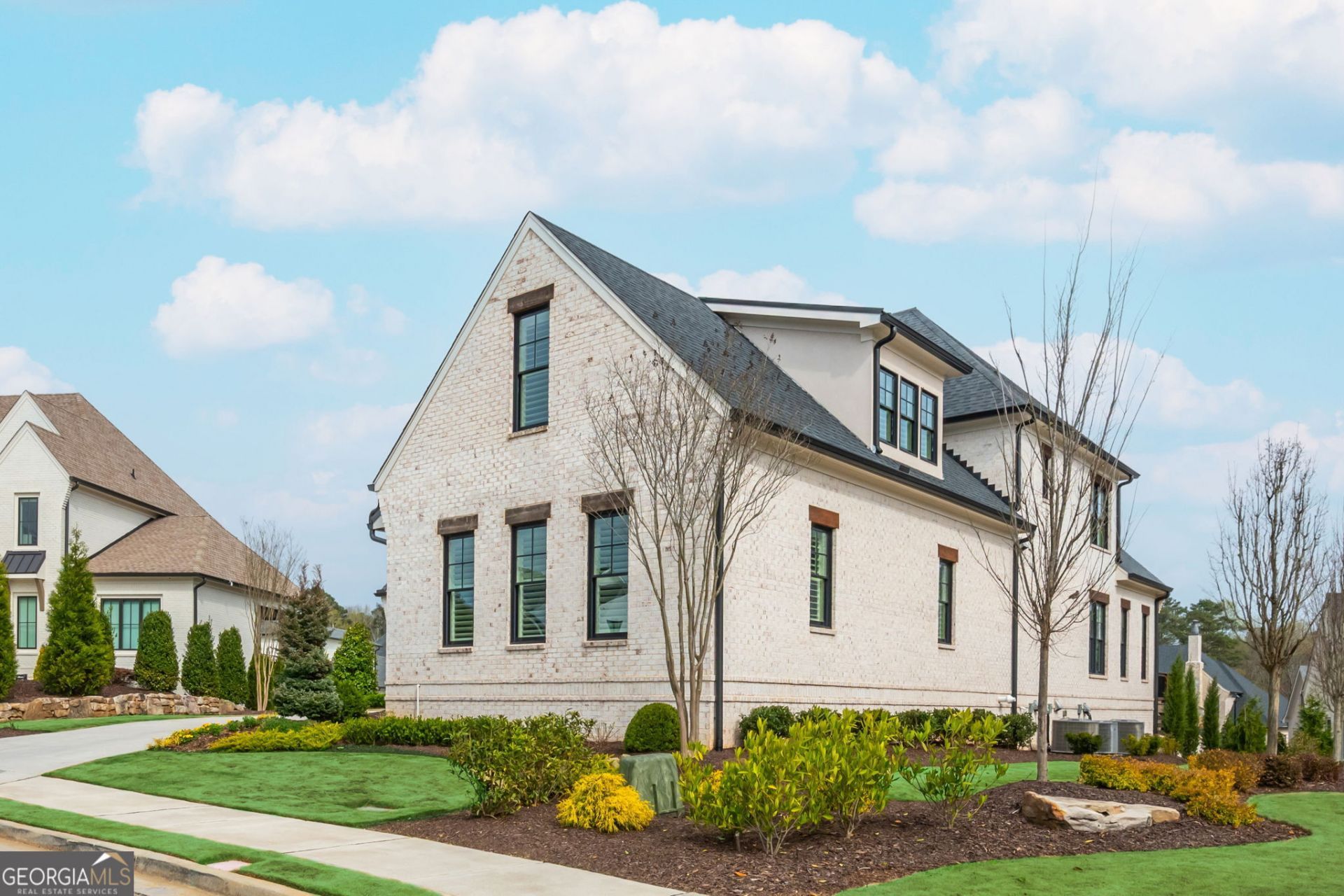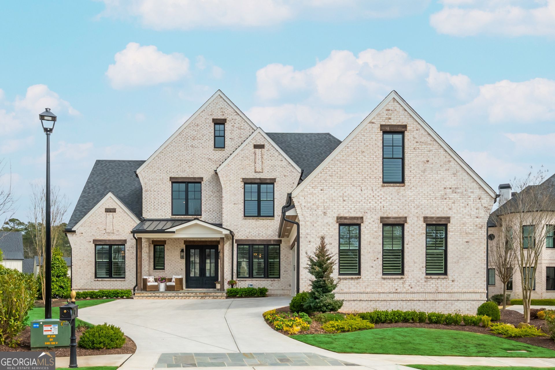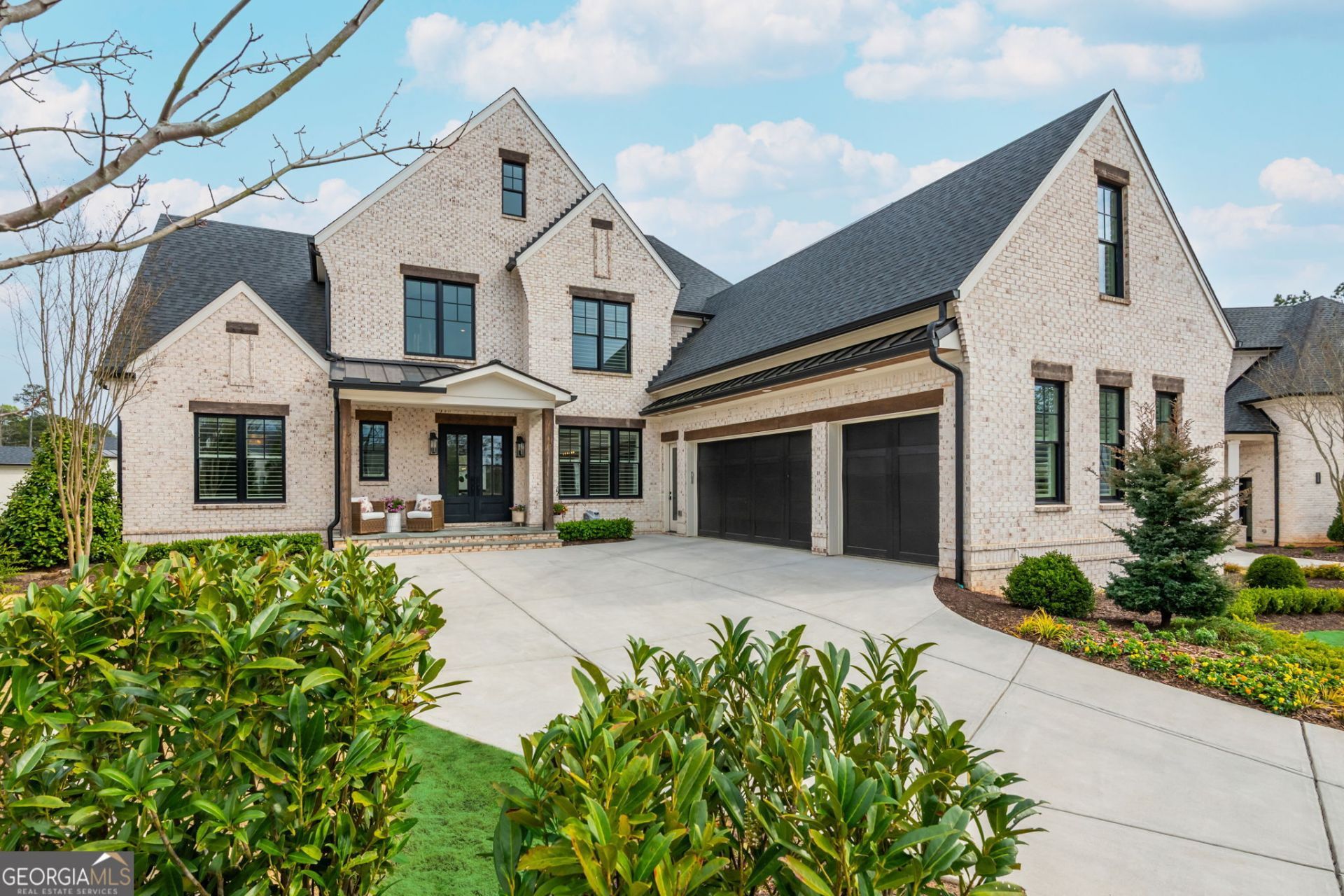 Tucked behind the gates of The Manor Golf and Country Club, this stunning two year old home in The Manor Cottages offers refined luxury and effortless living in one of Milton's most sought after communities. One of just 62 cottage residences, this exceptional home pairs timeless craftsmanship with a thoughtfully designed floor plan, creating a space that feels both elegant and inviting. The main level owner's suite serves as a private retreat, complete with a spa inspired bath, oversized shower, and spacious walk in closet. Designed for both comfort and entertaining, the great room features beam ceilings, a fireplace, custom built-ins, and opens seamlessly to the covered rear veranda. The kitchen is beautifully appointed with a large island, walk in pantry, generous dining area, and easy connection to the vaulted keeping room. A main level laundry room with a mudroom area adds everyday functionality. Upstairs, three private ensuite bedrooms are joined by a finished bonus space that can easily serve as a media room, home office, playroom, or additional lounge area. The finished terrace level adds another layer of luxury, offering a spacious guest suite with a spa inspired bath and oversized closet, a comfortable fireside family room perfect for cozy movie nights, a beautifully designed office with custom built ins and a striking accent wall, and an additional flex space that can function beautifully as a gym, sitting room, or extra living area. Enjoy a lock and leave lifestyle with access to The Manor's exceptional amenities, including indoor and outdoor pools, tennis courts, fitness center, two clubhouses, and a Tom Watson designed golf course, all within a gated community just moments from shopping, dining, and GA 400.