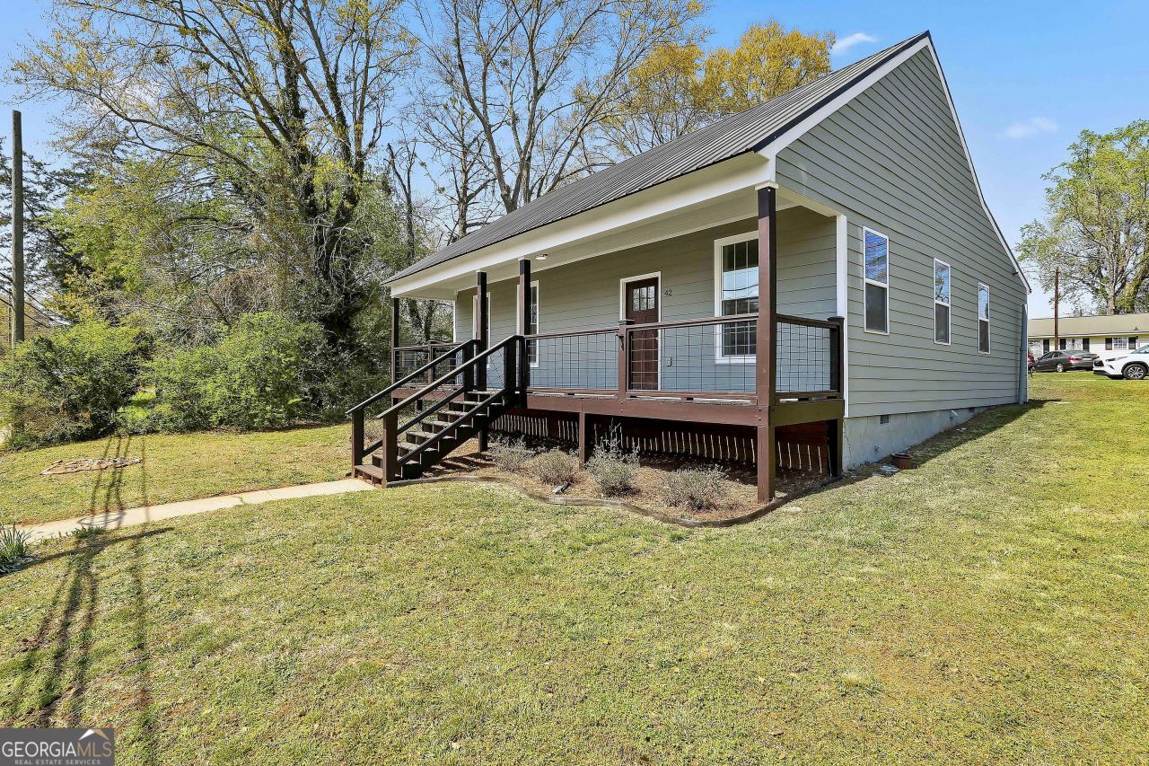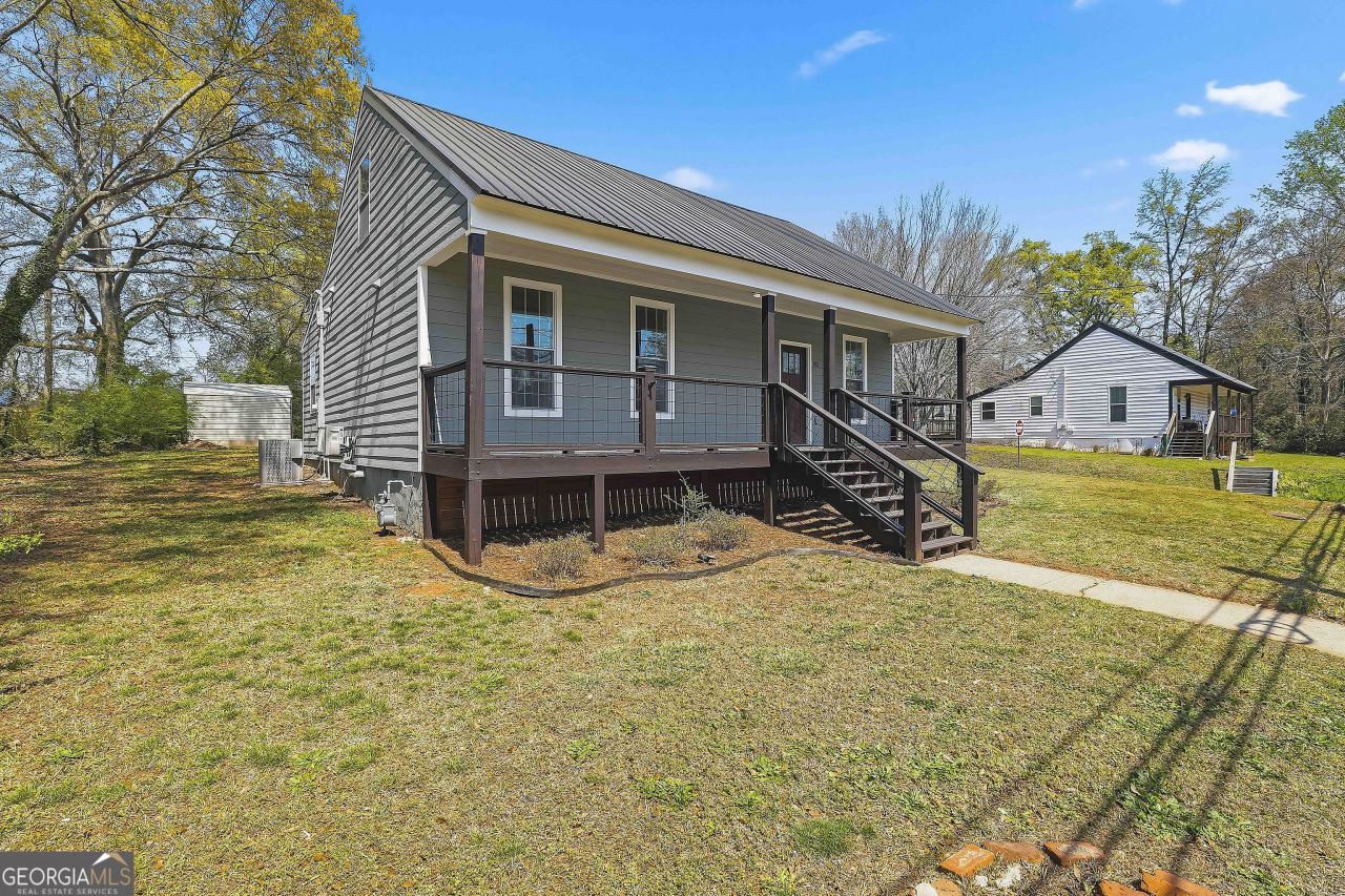 HISTORIC COTTAGE CHARM MEETS MODERN COMFORT IN THIS BEAUTIFULLY RENOVATED, MOVE IN READY HOME! Fall in love from the moment you step onto the expansive front porch - the perfect spot for morning coffee, evening chats, or simply relaxing after a long day. Inside, the open floor plan creates an inviting, easy flow that today's buyers love. The updated kitchen truly is the heart of the home, featuring a huge center Island w/ breakfast bar seating - ideal for casual meals, entertaining friends, or hosting family gatherings. You'll appreciate the tall cabinetry, SS Appliances inc. Frig, subway tile backsplash & sleek modern vent hood. Soft-close drawers & doors & walk-in Pantry add everyday convenience + smart functionality. Durable, moisture-resistant LVP flooring runs throughout the main living areas - stylish & low-maintenance for busy lifestyles or those ready to simplify. Fresh paint throughout gives the entire home a bright, refreshed feel. The family rm features a shiplap accent wall that creates a warm focal point, ready for your big screen or favorite artwork. The primary suite on main offers comfort & privacy & beautifully updated bathrm w/ double vanities. A secondary bedrm & full bath on the main floor provide flexible space for guests, a home office, or hobbies. Upstairs, the spacious third bedrm w/ new carpet & full bath makes a perfect private retreat - ideal for visiting family or creating your own quiet getaway. All bathrms are tastefully upgraded w/ framed mirrors, quality fixtures & comfort-height elongated toilets. Every bedrm features a generous walk-in closet, offering plenty of storage without compromise. You'll love the peace of mind that comes w/ a nearly NEW metal roof, HVAC system & hot water heater. NEW exterior paint too! Enjoy the ease of modern updates, manageable living space & main-level primary suite designed for long-term comfort. Located near downtown Newnan, you'll enjoy convenient access to local shops, restaurants & grocery stores + quick access to I-85 & Atlanta Airport - making travel & commuting a breeze.check out video tour