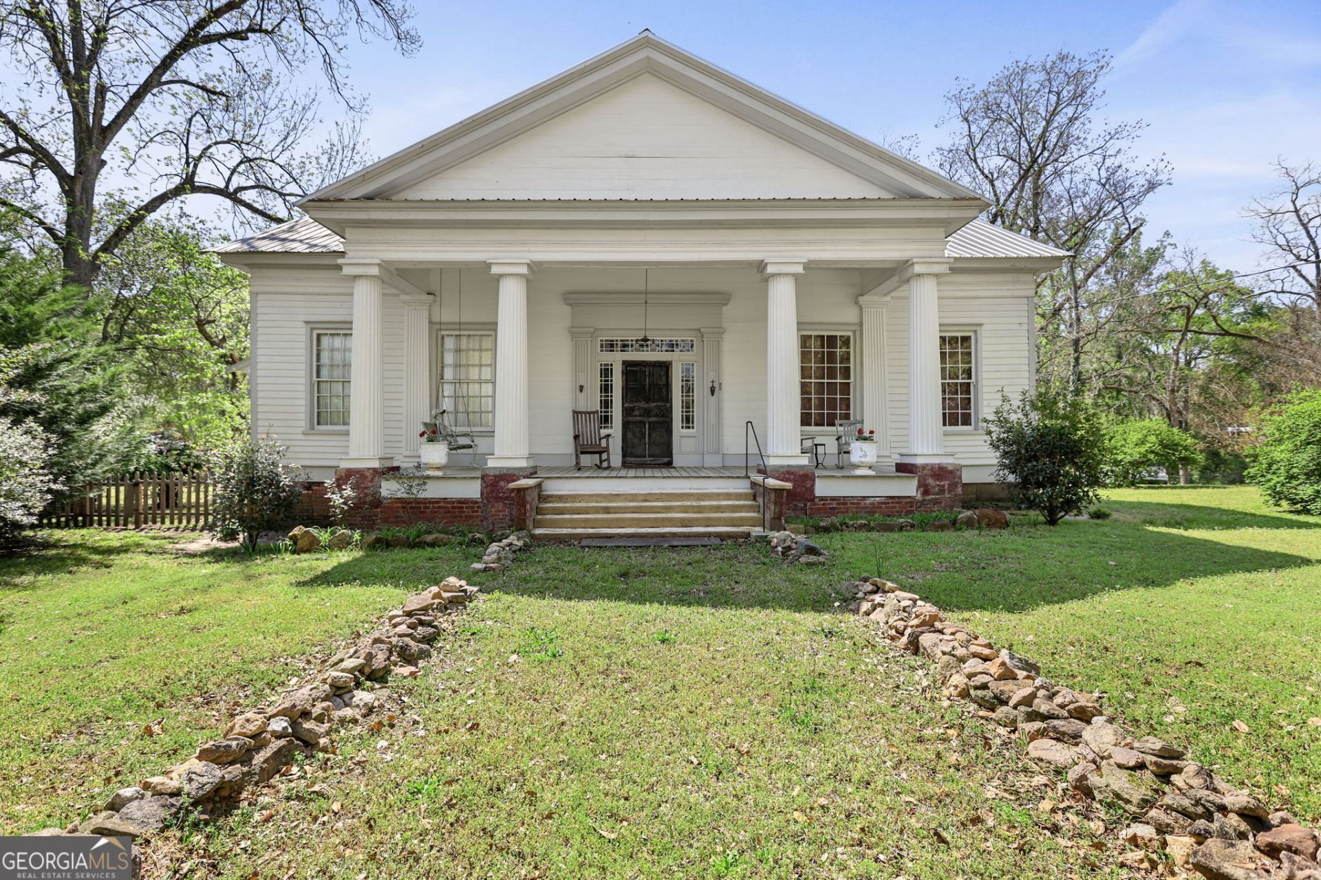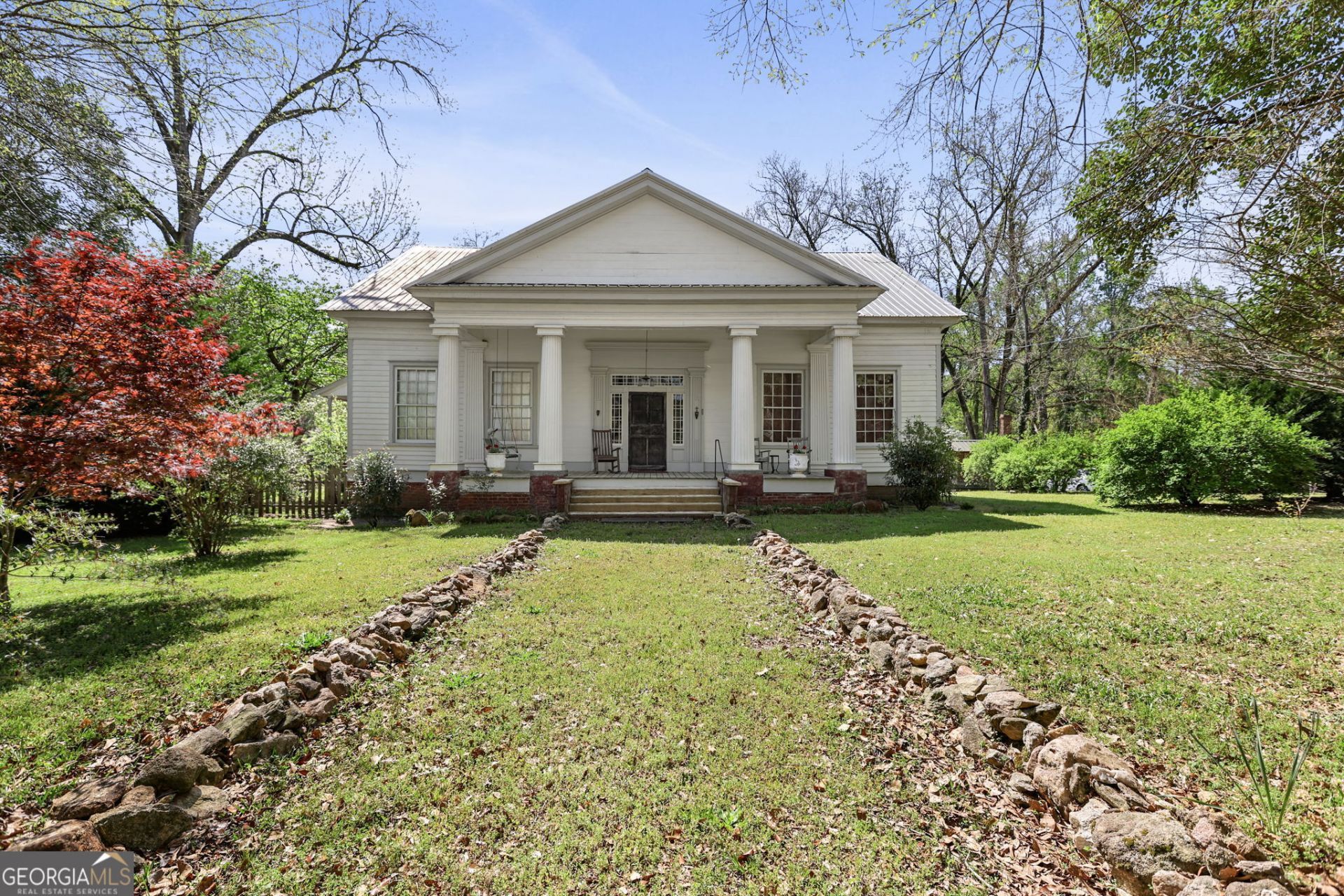 VERY authentic , historic residence. Home has been totally updated, new electrical, new plumbing, new metal roof, foam insulation & more. Huge hall, 2 bedrooms main level, formal dining room, parlor, den, kitchen, with pantry, 2 bedrooms upstairs . Home is located in the historic district of Greenville, Ga. High ceilings, ornate molding, open , spacious rooms, multiple porches, old barn in backyard . Plenty of room to add more bathrooms, if needed. Seller will add central hvac prior to closing. Seller will have parlor painted , prior to closing. Listing has road frontage on LaGrange St., Terrell, & RD Hill. (3.4+- acres) There is a spring fed stream in back yard. Many amenities with this cherished residence. Call today to schedule your appt.