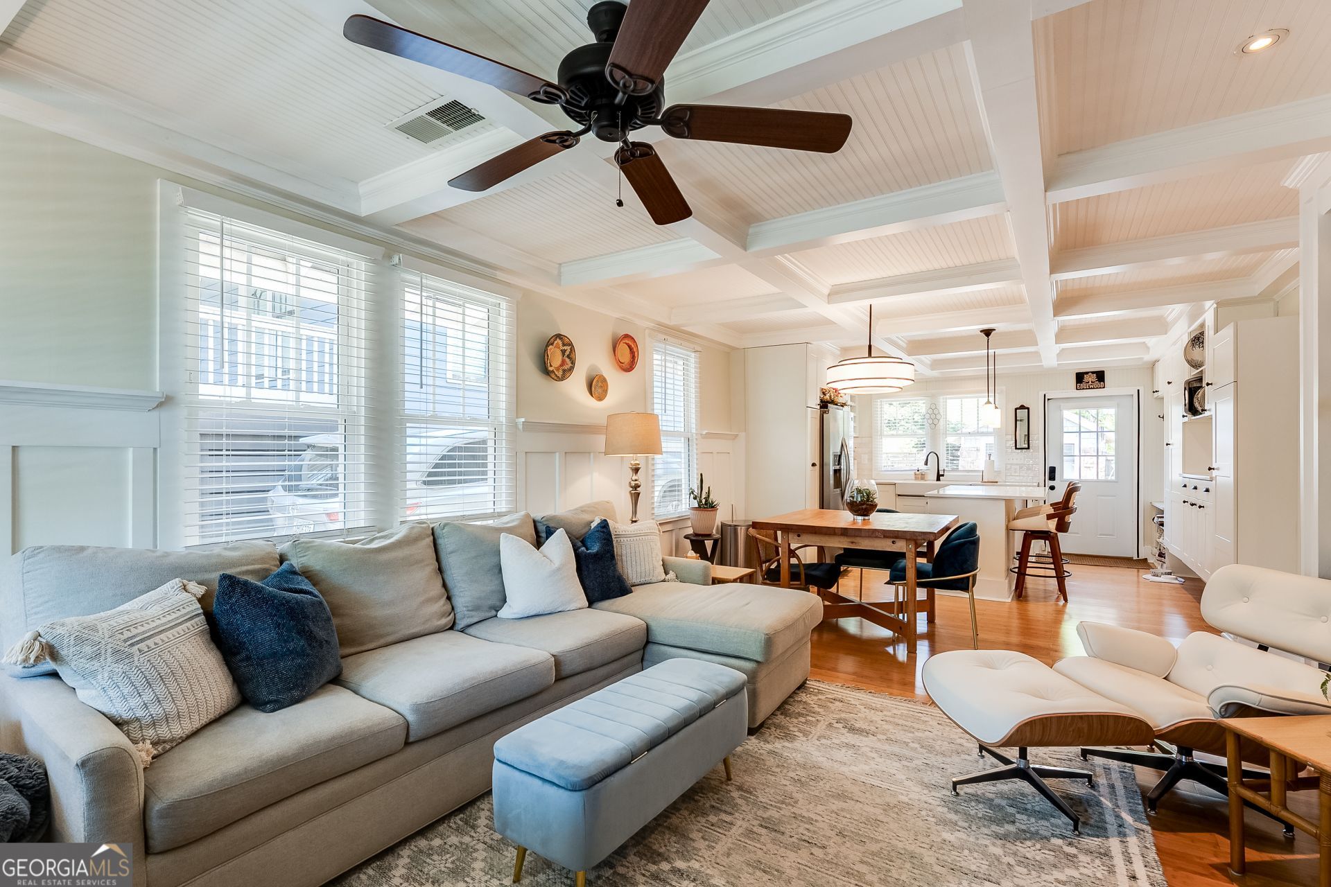Welcome to this beautifully updated 2 bedroom, 2bath house located in the highly desirable neighborhood of Edgewood. This home offers 1,104 square feet with beautiful hardwood floors throughout, high ceilings, and a bountiful amount of natural light. The open concept living room that leads into the kitchen offers a coffered ceiling, beautiful wainscoting along with built-in oversized bookcases which flanks both sides of the stone decorative fireplace and mantle. Located to the rear of the living room is the recently renovated kitchen featuring new granite counter tops, a striking ivory back splash, all stainless steel appliances, and a separate island that gives you extra prep space and a natural gathering spot. Both bedrooms are thoughtfully designed, while the primary suite delivers a more elevated retreat with a vaulted ceiling, french doors with direct access to the wrap-around rear patio and your private fenced in backyard. The primary bath feels polished and spa-inspired with a double vanity topped in stone, a frameless glass shower with granite both on the walls and floor. The secondary bedroom located to the front of the home with its own bathroom is suitable for roommates, guests, or a dedicated work-from-home setup. The property also features a detached garage with its dedicated driveway along with ample off-street parking. You're just moments from 45 Moreland Shopping Area that has neighborhood favorites such as Wylie & Rum, That Burger Spot, Your Vitamin Lady Kitchen and Nothing Bundt Cakes.The Edgewood Retail District, Little Five Points, and East Atlanta Village are only a short drive away. Shopping, dining, music, and local culture is all at your fingertips here. This property places you close to some of Atlanta's favorite destinations while still offering the comfort of a private residential setting. If you've been searching for a rental home that combines thoughtful updates, standout design details, an inviting outdoor space, and unbeatable convenience, this one you don't want to miss out. Schedule your tour now. The home will be ready for move-in on June 1, 2026.