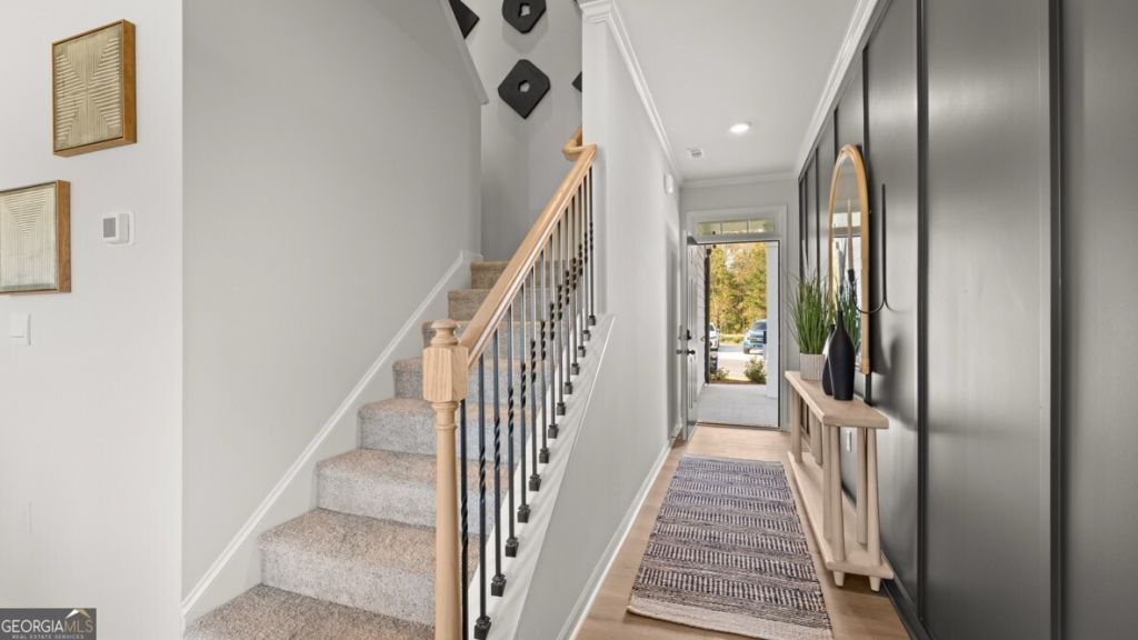 Welcome to 48 Berryville Drive located in the Hughes Court community of Dawsonville, GA. Featuring the Salisbury townhome floorplan, this homesite has 3 bedrooms, 2.5 bathrooms with 1,857 square feet and a 2-car garage. As you step off the front porch, a foyer welcomes you and leads into the open-concept main living area. A large family room is the perfect place for family and friends to gather or for a quiet night with a book or movie. The family room flows seamlessly into the well-appointed kitchen with a center island, quartz countertops, subway tile backsplash, gray cabinets with decorative crown molding and hardware, and stainless-steel appliances. A dining area directly off the kitchen provides space for a dining table and opens onto the back deck or patio. There is also a half bathroom tucked away on the first floor. Up the stairs you'll turn from the landing into the primary suite. A spacious bedroom is complimented by the en suite bathroom featuring a separate tub and shower, dual vanity, water closet, linen closet, and 2 roomy walk-in closets. 2 secondary bedrooms, the laundry room, and an additional bathroom round out the upper floor. Does 48 Berryville Drive sound like a dream come true? Contact us at Hughes Court to schedule a tour of this lovely home in Dawsonville, GA.