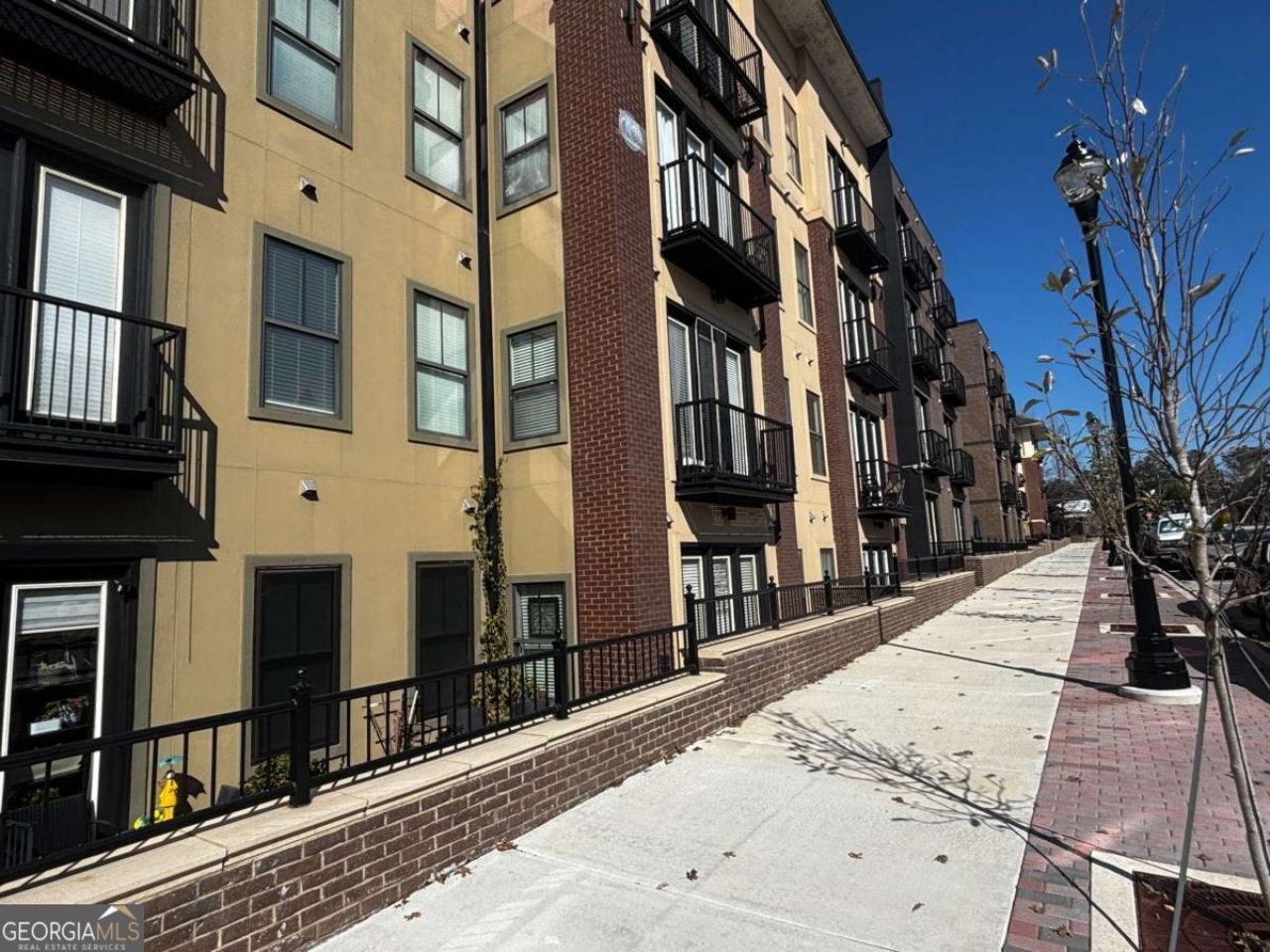 Beautiful 2-bedroom loft featuring an open concept floor plan on the bottom floor. The kitchen offers granite countertops, stainless steel appliances, and hardwood floors that extend into the living area. Refrigerator and washer/dryer are included. Brand-new carpet throughout the bedrooms. This unit is quietly situated in an interior location within the building, with a private patio overlooking a peaceful interior courtyard. Both bedrooms and bathrooms are generously sized, offering comfortable living space. Enjoy resort-style amenities including a swimming pool, covered parking, modern fitness center, rooftop access with tennis courts, cafe with billiards table, and three beautifully landscaped interior courtyards with water features. On-site management company for added convenience. Located directly across the street from MARTA. Includes two assigned covered parking spaces and a private storage unit.