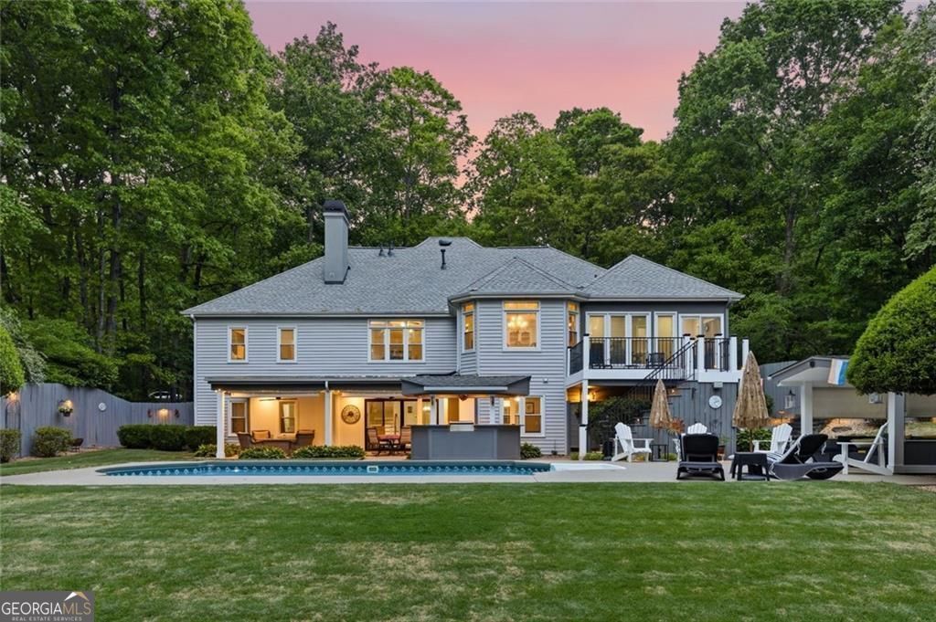 Set on just over an acre in sought-after West Forsyth School District, 5725 Ash Drive offers a rare combination of luxury, flexibility, and resort-style outdoor living. With 6 bedrooms, 4 full baths, and 1 half bath, this fully updated home has been designed with both beauty and function in mind. Inside, custom craftsmanship is evident throughout with white cabinetry, detailed millwork, 8-foot doors, and luxury design elements including drapery that blends seamlessly into the crown molding. Hardwood floors span the main level and built-in bookcases in the living room are ready for your designer touch! A sunroom just off the kitchen creates the perfect spot for a home office, reading room, or plant oasis. A deck just outside extends your living space outdoors. Every closet in the home has been custom designed, and additional storage options in both the attic and terrace level make it easy to stay organized without sacrificing living space.The primary suite is a true retreat featuring a custom closet and spa-inspired bath with a soaking clawfoot tub, dual vanities, water closet, and separate shower room. Upstairs, you'll find two additional bedrooms and a full bath. The finished terrace level offers exceptional versatility with its own private living quarters complete with a second kitchen, living room, 3 bedrooms, and 2 full baths. One of the standout features is a bathroom with a zero-entry shower, adding both modern style and easy accessibility for multigenerational living, guests, or long-term comfort. Hidden behind a secret door, the theater room adds a fun and unexpected touch. Step outside through the new glass slider doors to a covered patio overlooking the saltwater pool, expansive backyard, and lush mature landscaping. The expansive yard is ready for play, gardening, entertaining, and everything in between! Here you have room for it all with no compromises. An outdoor kitchen, pool cabana, and another full bath (yes, an outdoor bathroom) make the backyard ready for unforgettable gatherings. Irrigation is already in place for both the front and back yards. A separate 2-car garage with finished epoxy flooring provides additional parking, storage, or hobby space. This is more than a home, it's a private retreat in one of Cumming's most desirable locations. Located just minutes from Vickery Village, The Collection at Forsyth and access to Ga400.