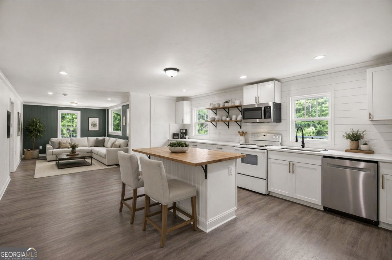 Unique opportunity in Hogansville! This fully renovated 5-bedroom, 5-bath home offers 2,355 sq ft of flexible living space on 1 acre. Originally two homes, it has been thoughtfully combined to create the perfect setup for multi-generational living, rental income, or a private guest suite. The main home features an open-concept kitchen, living, and dining area, along with 2 bedrooms, 2 bathrooms, and a bonus office or game room. The separate in-law suite includes its own full kitchen, 2 bedrooms, and 2 bathrooms-ideal for extended family or income-producing opportunities. A private bedroom and bath connect the two spaces, adding even more flexibility. Enjoy outdoor living with two decks, a chicken coop, and plenty of room to spread out on your 1-acre lot. Whether you're looking for space, income potential, or a home that adapts to your lifestyle-this one checks all the boxes. Some photos have been enhanced with virtual staging.