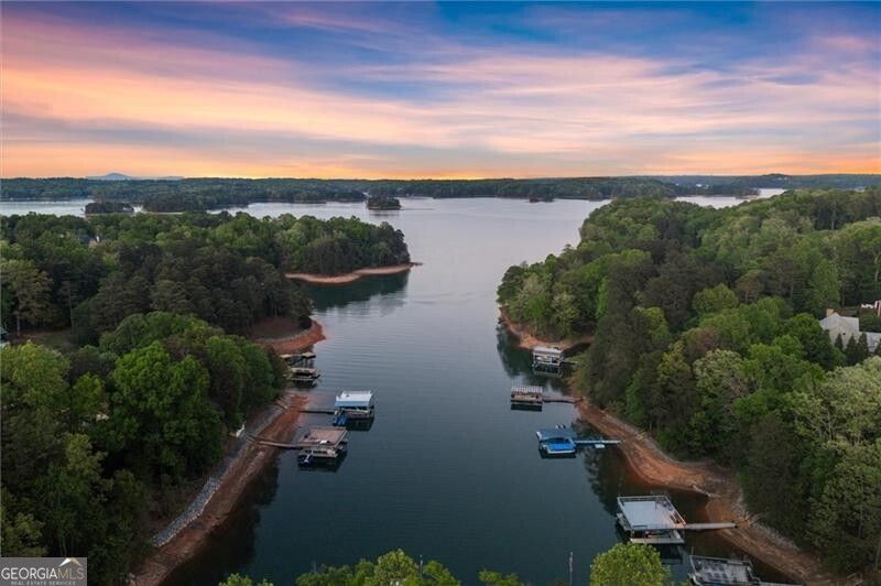 Offered for the first time since its custom construction, this four bedroom, 3.5 bath, private Lake Lanier home sits on a rare 2.25-acre double lot with the core line extending to the middle of the backyard, providing a broad and protected setting with deep water access. The four-sided brick ranch spans approximately +/- 4,500 square feet and features tall ceilings, spacious living areas, and a flexible layout designed for both entertaining and everyday comfort. Interior highlights include stone and brick fireplaces equipped with enclosed gas logs and forced-air systems for additional warmth and efficiency. Expansive double decks and two screened porches overlook the property and lake, creating seamless indoor-outdoor living. The home features a separate door off the garage to a fenced courtyard perfect for a dog run. A permitted cart path and lighted walkway lead to a covered 32x32 two-slip party dock with jet ski pad, boat hoist, and deep water. Recent updates include a new roof (2025) and new HVAC systems (2024). Additional features include epoxy garage floors, and custom cabinets, maintenance-free Trex decking braced for a future hot tub, an oversized water heater, newer double ovens, another space above the garage and a three-car garage courtyard entry. Well maintained and in great condition, the home offers an opportunity for cosmetic updates while benefiting from strong construction, exceptional land, and a highly desirable waterfront setting. First time on market. Double lot. Deep water. Easy lake access. A retreat for generations. A rare opportunity to become part of a story already beautifully begun.
