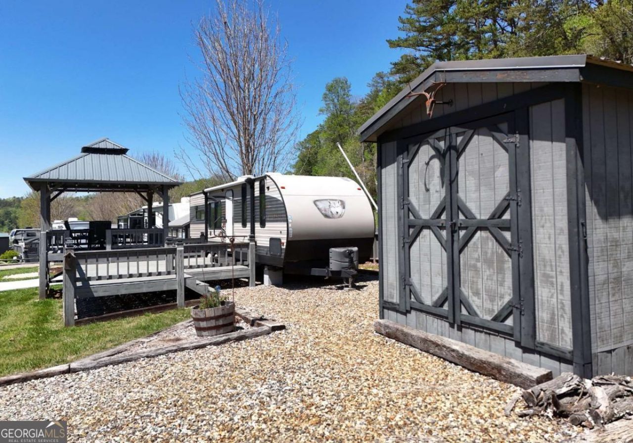 Escape to the mountains with this beautifully maintained 2016 Forest River camper, perfectly situated on a peaceful .07 acre lot in Sunset Valley RV Park. This charming one-bedroom, one-bath retreat offers a comfortable and functional layout with an open-concept living room and kitchen area-ideal for relaxing or entertaining after a day of exploring. The outdoor living space truly sets this property apart. A spacious, well-built deck extends from the camper, featuring both open and covered areas. The covered gazebo-style section creates the perfect shaded retreat for dining or unwinding, while the open deck offers plenty of room to soak up the sunshine. With attractive railing details and a welcoming layout, this space is ideal for hosting guests or enjoying quiet mountain mornings and evenings. Located just minutes from some of North Georgia's most sought-after destinations, including Brasstown Bald, Vogel State Park, and Helton Falls, this property offers the perfect blend of tranquility and adventure. Whether you're looking for a weekend getaway or a low-maintenance mountain retreat, this property delivers comfort, charm, and an unbeatable location. The well-kept park offers a welcoming clubhouse, and the HOA covers grass mowing, sewer, water, trash, and all road maintenance-making this a truly low-maintenance mountain retreat or full-time home. Call me today
